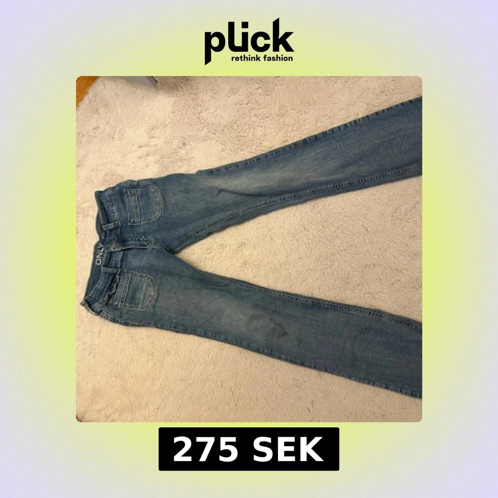 Snygga blå jeans från ONLY i klassisk bootcut-modell. Jeansen har fem fickor, bälteshällor och en lätt tvättad look. Tillverkade i mjukt denimtyg som sitter skönt och passar perfekt till sneakers eller boots. De är insydda så skulle säga att de är mer 28/32 i storlek! De är ca 82cm i innerbenslängden och uppsprättade där nere! 🥰