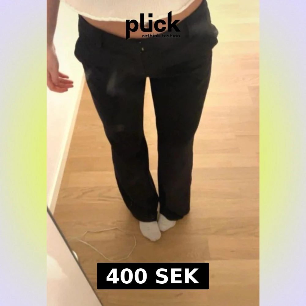 Snygga svarta kostymbyxor från ONLY tailoring i storlek 34/32. Byxorna har bootcut passform, bälteshällor och klassiska fickor både fram och bak. Perfekt för dig som gillar stilrena och trendiga byxor med lite vidare ben. Nypris 600. Jag är 170 och sitter perfekt i längden på mig