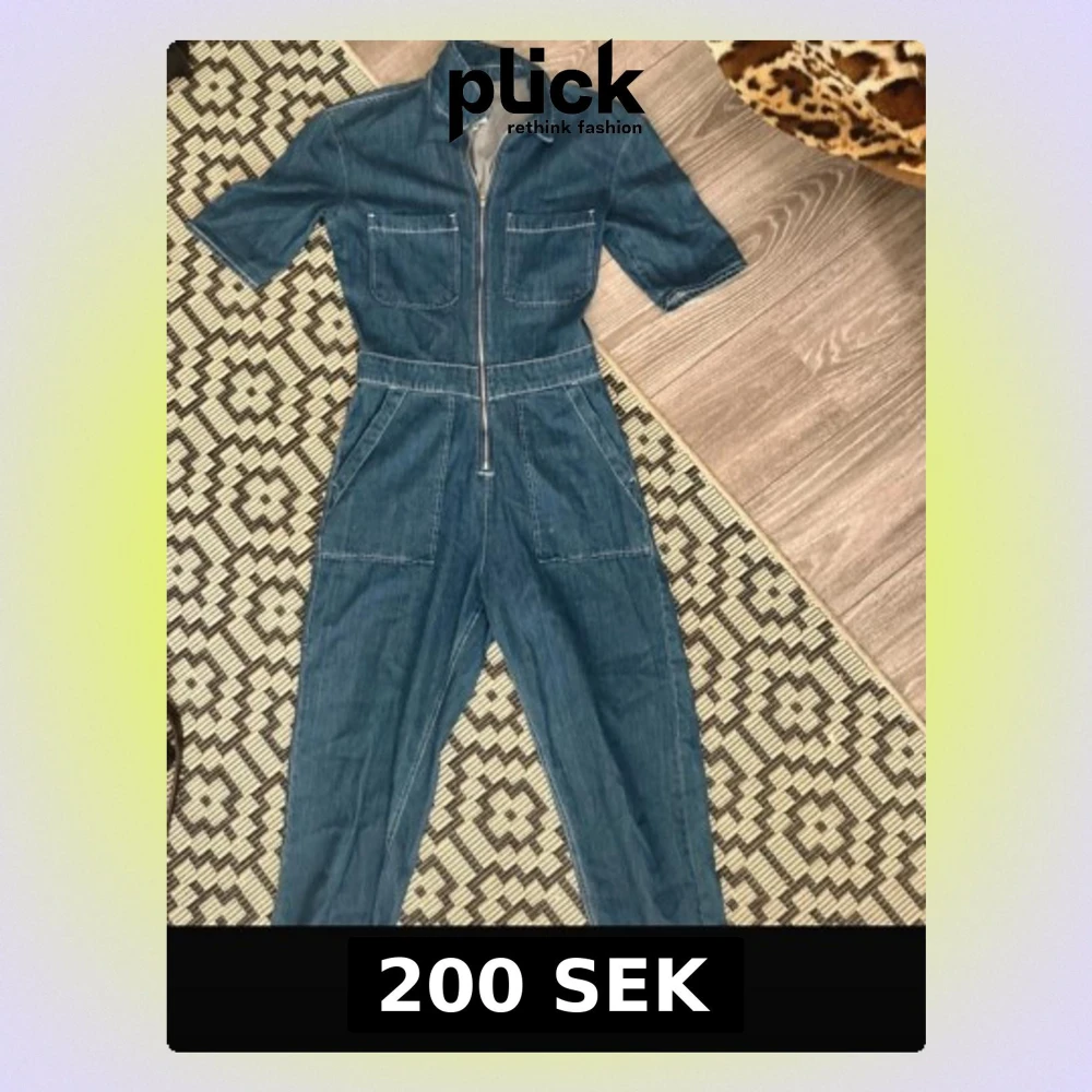 Säljer en snygg blå jeans jumpsuit från ONLY i storlek 34. Modellen har korta ärmar, två stora bröstfickor och dragkedja framtill. Materialet är klassisk denim med vita sömmar och jumpsuiten har en rak passform med markerad midja. Straight fit, aldrig använd