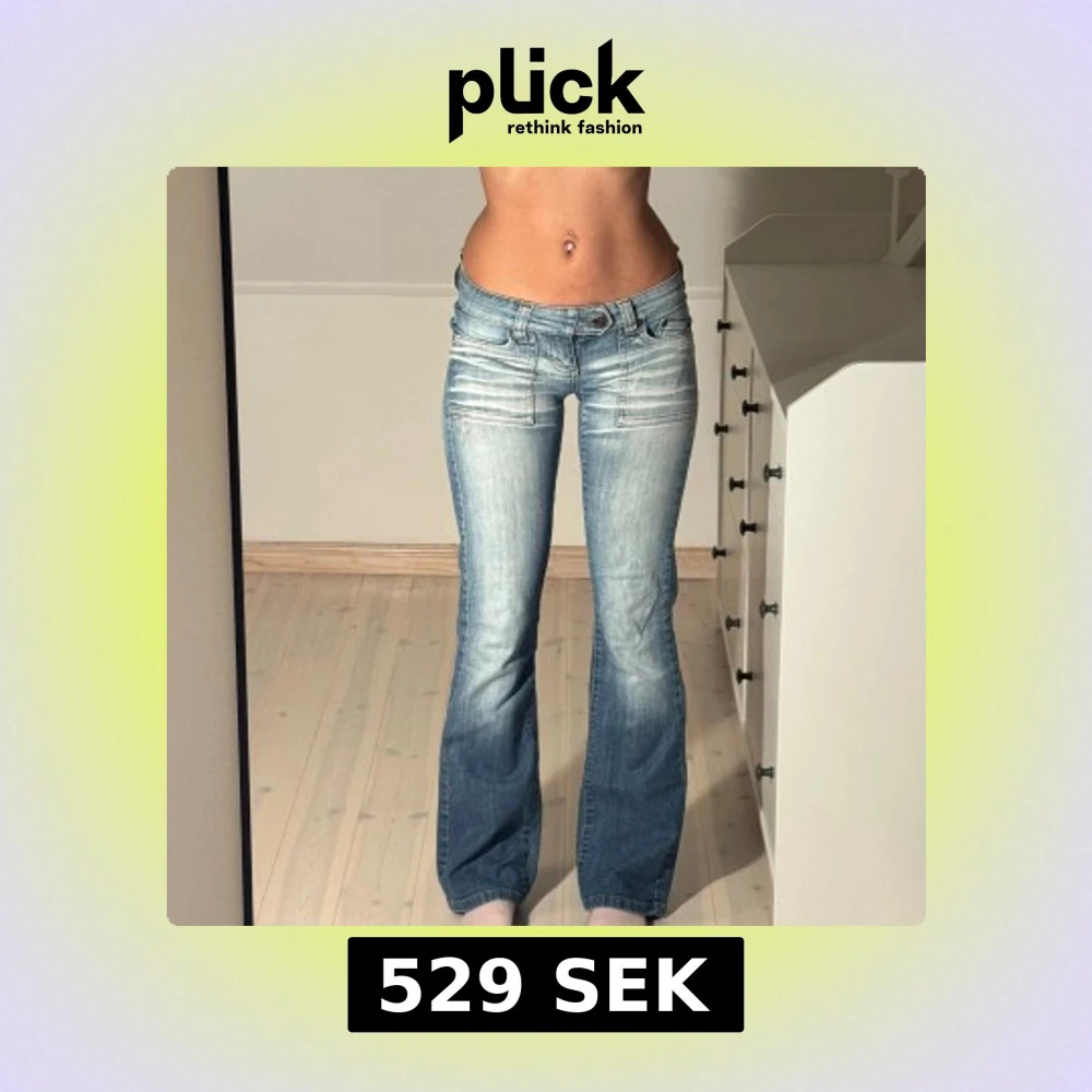 Midjemått: 36cm. Innerbenslängd: 80cm. Storlek 34. (Liten fläck på ena benet samt bredvid ena bakfickan. Aningen slitna benslut.) Kolla in min profil, följ för fler plagg🙌