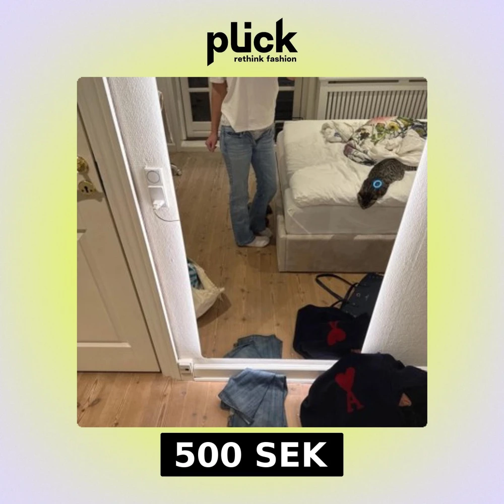 Snygga blå Levis jeans med en klassisk design. De har en bootcut-stil och är lågmidjade.