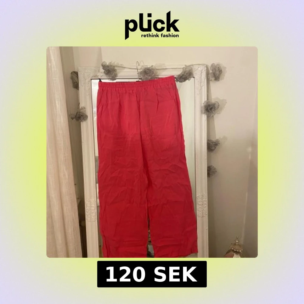 Säljer ett par rosa byxor från ONLY med resår i midjan och avslappnad, vid passform. Byxorna är tillverkade i ett lätt material som känns luftigt och skönt. Perfekta för dig som gillar en chill och trendig look.