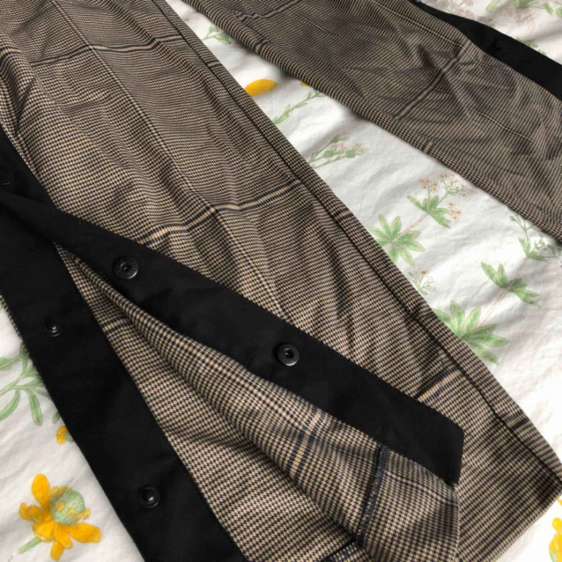 Supertrendiga byxor från Monki med uppknäppbara ben. Aldrig använda (lapp kvar). Storlek xs men passar även s. Ordinarie pris 350kr.