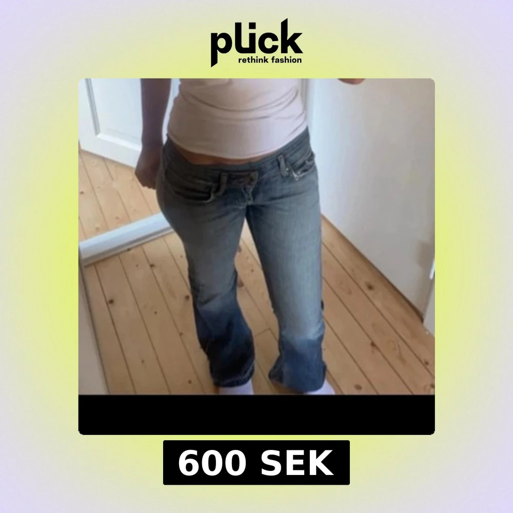 Säljer ett par snygga blå jeans med bootcut och låg midja. Skriv vid intresse!! Midjemått 35 å innerben 79! Inte mina bilder pga att de inte passade mig