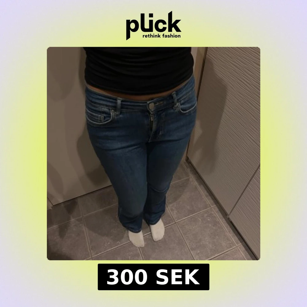 Snygga blåa jeans med låg midja och flare-stil med ett stretchiga material. Storleken är XS med längden 31. Använd ett antal gånger. Köpta för 500 kronor på ONLY.