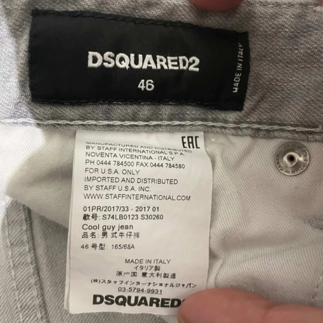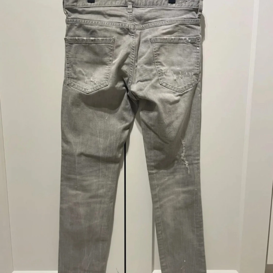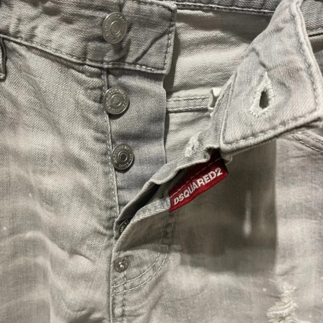 Snygga grå Dsquared2 Cool Guy jeans i tvättad look med slitningar och trasiga detaljer framtill och bak. Äkthetsbevis finns! Bara skriv om du vill veta mer.