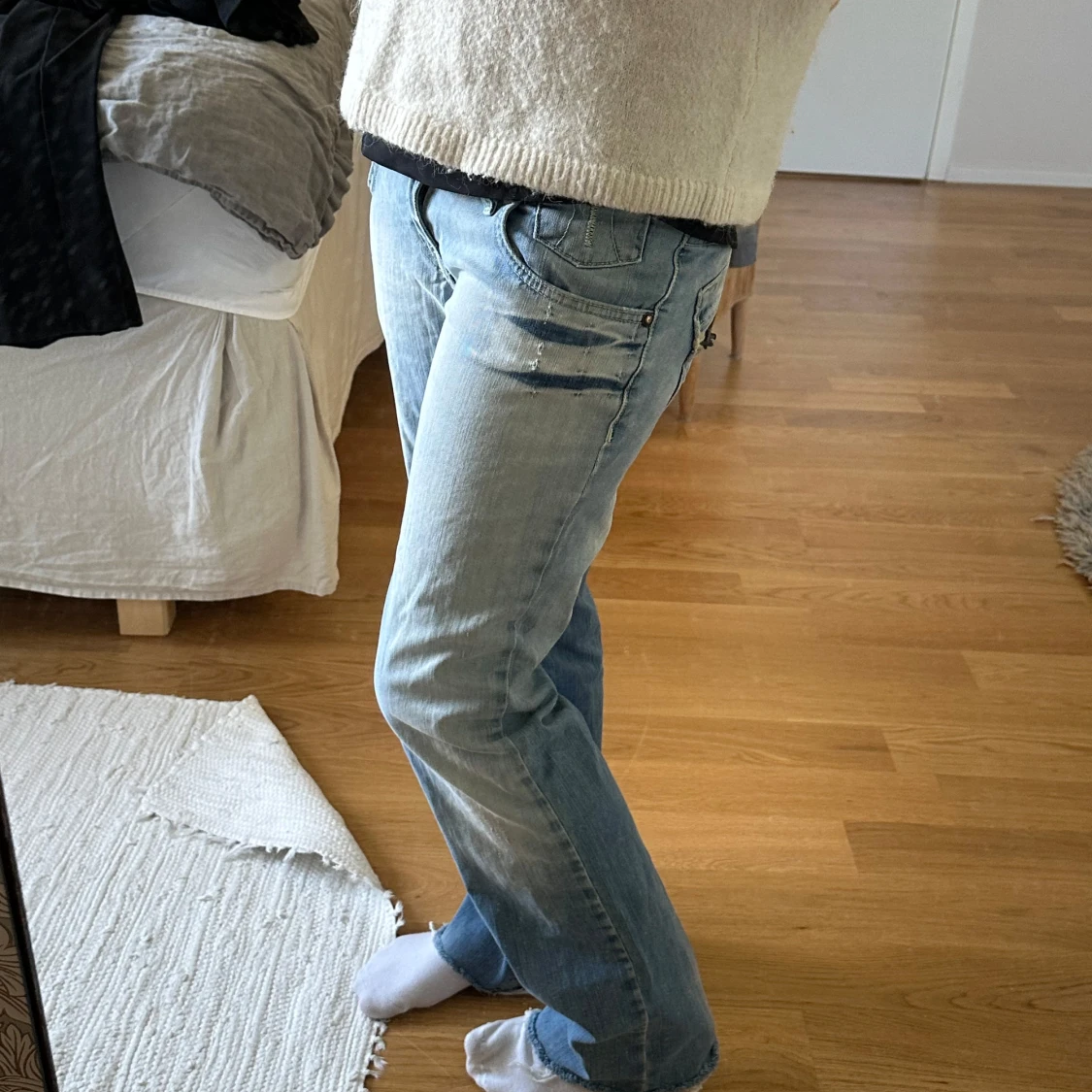 Säljer dessa superfina fornarina jeans, är lite osäker på storlek men tror att de är i storlek w29🩷De är köpta på plick och avklippta längst ner, bra skick (utifrån vad jag har sett) - men var tyvärr förstora för mig’ De är lowwaist och lite bootcut !