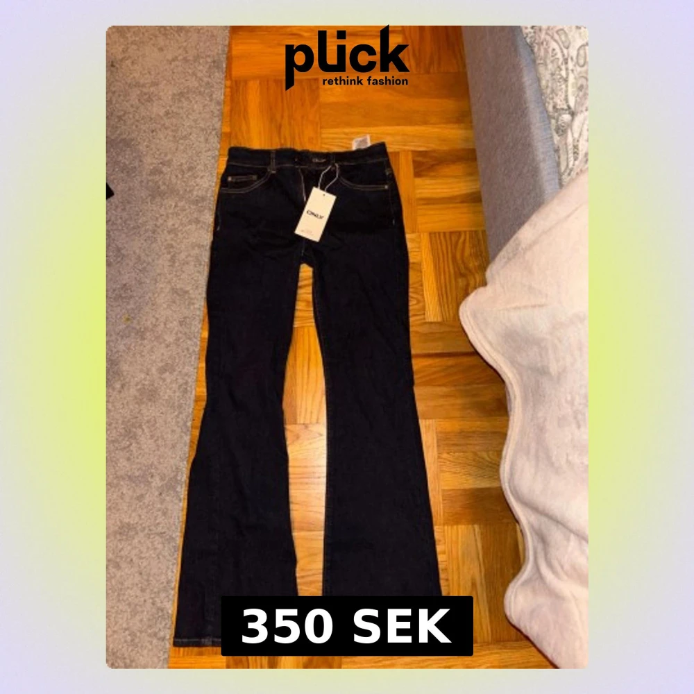 Snygga mörkblå jeans från ONLY i modellen ONLBLUSH MID FL STAYBLUE. Jeansen har klassisk femficksdesign, kontrastsömmar och bootcut-ben. Tillverkade i jeansmaterial med midwaist passform. Perfekta för dig som gillar en tidlös och trendig look.