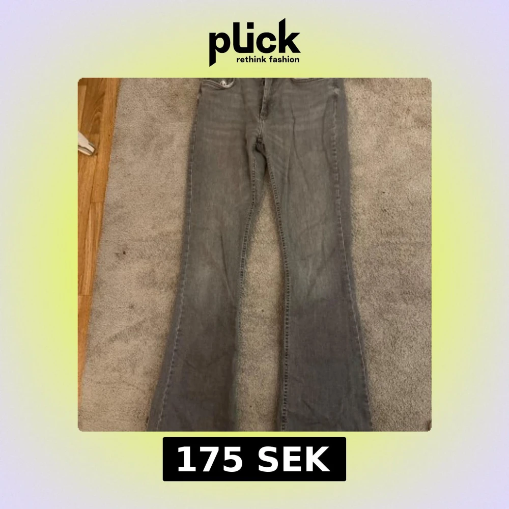 Snygga grå bootcut jeans från ONLY med klassisk femficksdesign och dragkedja. Perfekta för en avslappnad stil med en touch av retro. De har en bekväm passform och är tillverkade i ett slitstarkt material!🩶 använda 2 gånger men byxorna är ganska små i storleken så det är derför jag inte kunnat använda dom mer. Nypris 499