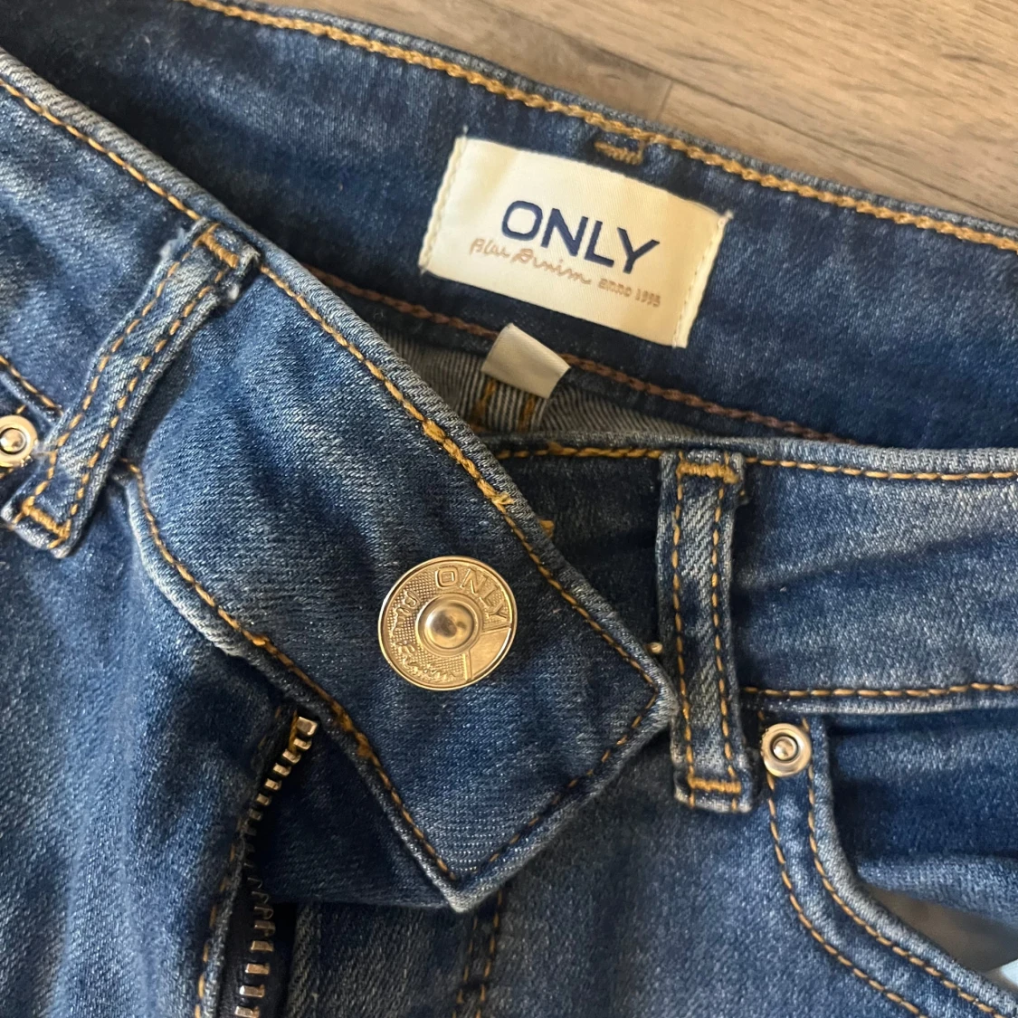 Snygga blå jeans från ONLY med klassisk bootcut-modell. Jeansen har fickor, dragkedja och knapp framtill. Jag köpte jeansen för 800kr och har använt max 2 gnr, Men om någon vill diskutera pris är det bara att skriva💘