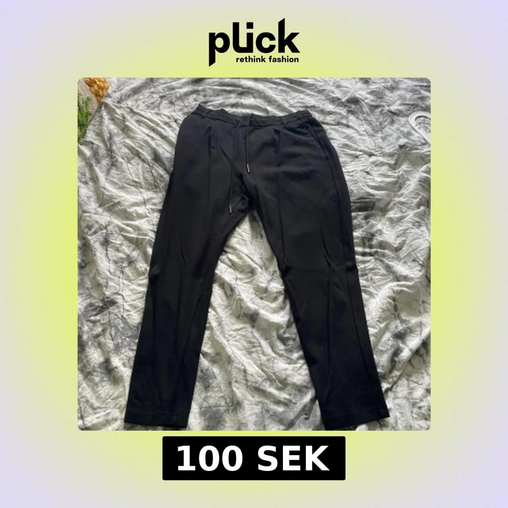 Svarta byxor med rak passform och dragsko i midjan. Byxorna har diskreta fickor och är perfekta för en avslappnad men stilren look. Har tre likadana annonser för har tre par av byxorna hemma