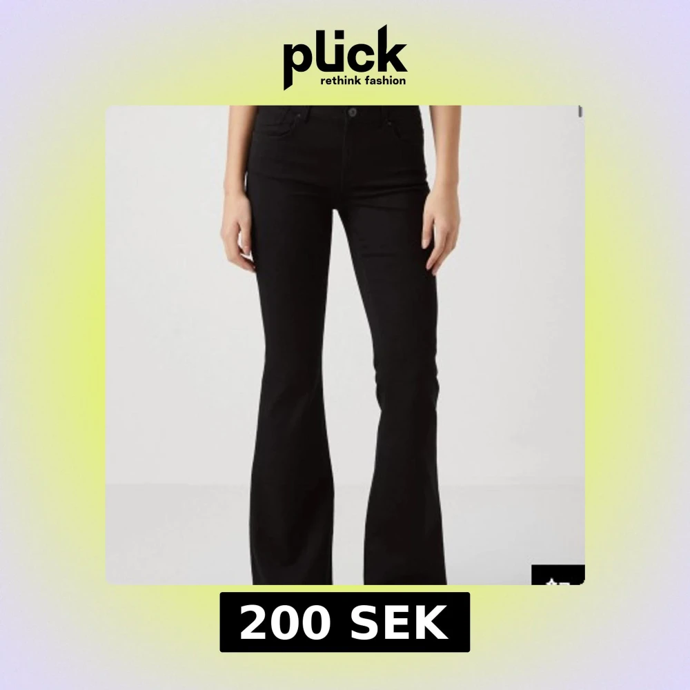 Snygga svarta bootcut jeans från ONLY. Storlek 28 x 32, passar mig som vanligtvis bär 36 (S) och är 163 cm. Väldigt bekväma med fin passform. Köptes för 359 kr.