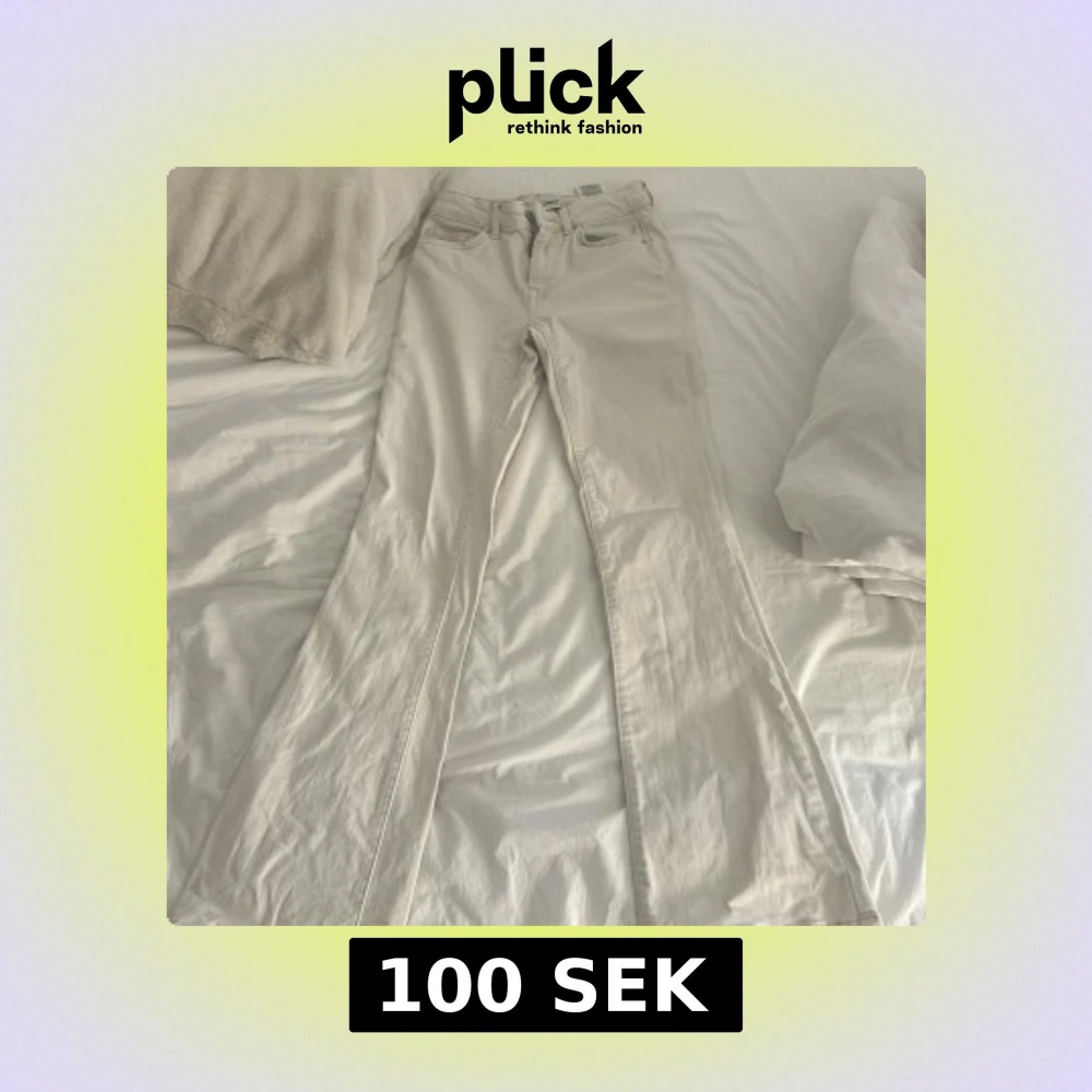 Snygga vita jeans från ONLY i bootcut-modell. Byxorna har klassisk femficksdesign, normal passform och är tillverkade i ett mjukt bomullstyg. Perfekta för dig som gillar en stilren look med lite utsvängda ben.