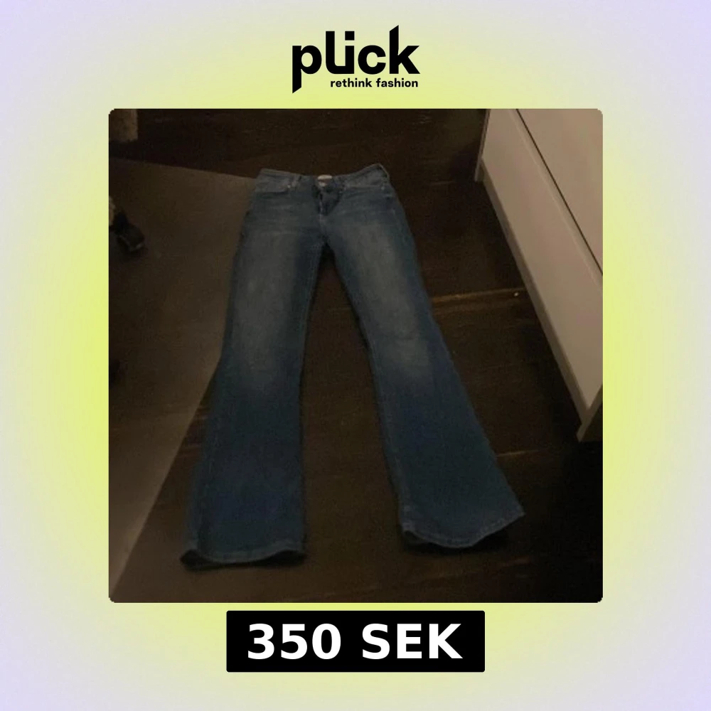 Säljer ett par klassiska blå jeans från ONLY. De har en bootcut-stil och är tillverkade i jeansmaterial. Byxorna har en dragkedja och knapp framtill samt fem fickor. Dem är stretchiga och väldigt skönt material, jag säljer dessa för jag använder dom aldrig !💘