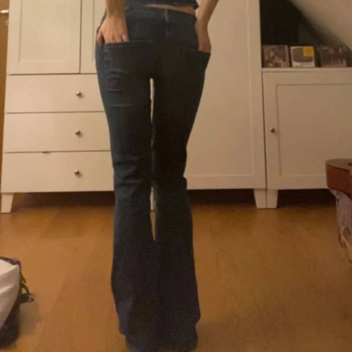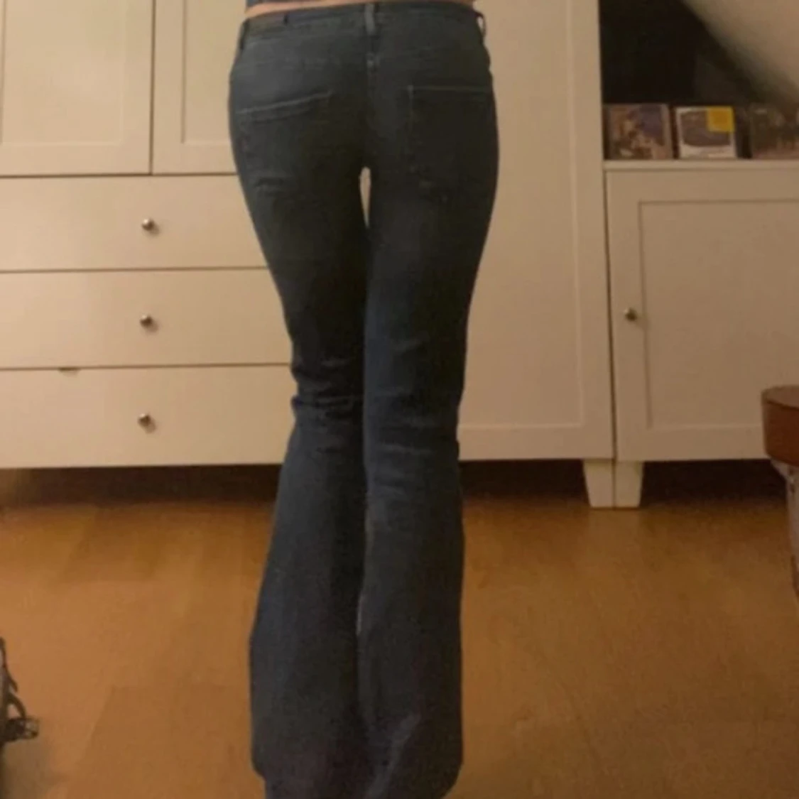 Supersnygga jeans från ONLY! Stretchiga och sköna❣️ Midjemått: 38 cm (men väldigt stretchigt material!) Innerbenslängden: 84 cm För referens är jag 172 cm. Omsydda i grenen för passformen.