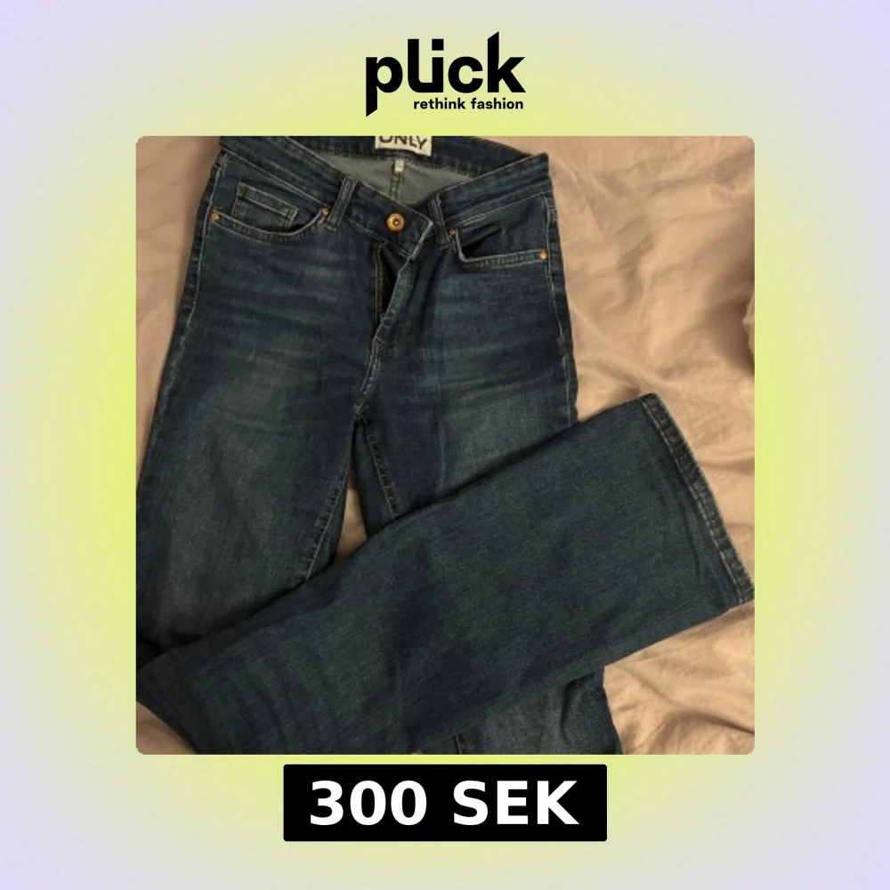 Snygga mörkblå jeans från ONLY med klassisk femficksdesign och bootcut-ben. Jeansen har gylf med dragkedja och knapp upptill. Midwaist.