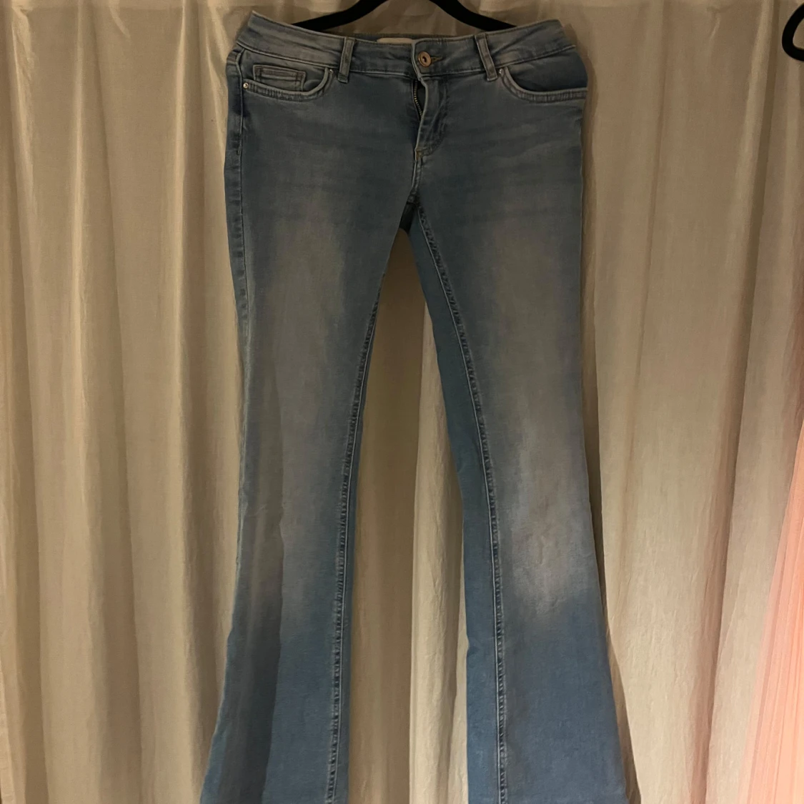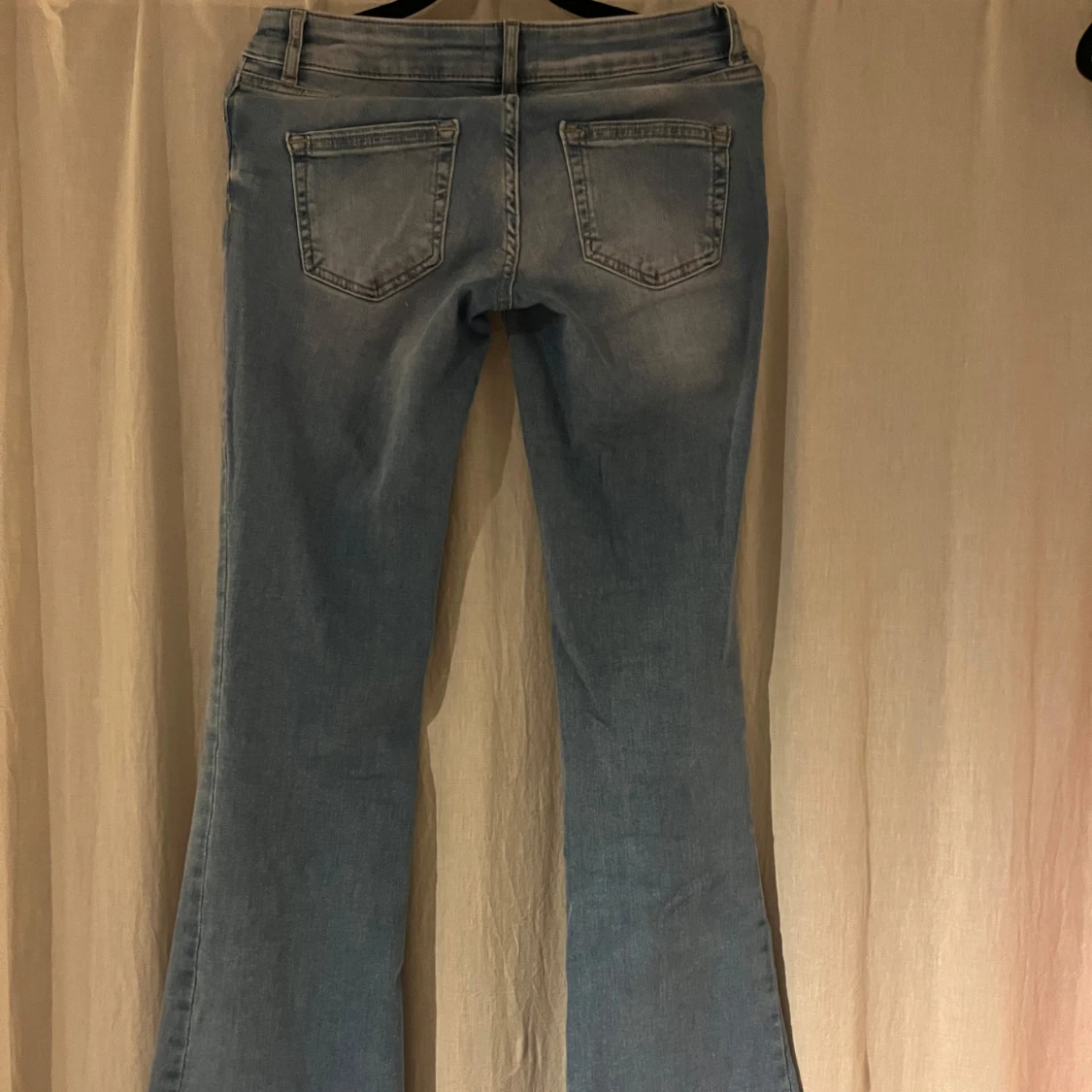 Säljer ett par ljusblå bootcut jeans med låg midja. Jeansen har klassisk femficksdesign och stängs med knapp och dragkedja. Perfekta för dig som gillar en retroinspirerad look med utsvängda ben. Första bilden lånad, superfina och otroligt sköna!😇