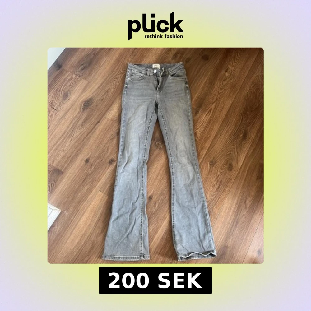 Grå jeans från Only med klassisk femficksdesign och bootcut-ben. Jeansen har normal passform och är tillverkade i mjukt bomullsmaterial med en lätt tvättad look. Perfekta för dig som gillar en avslappnad men ändå snygg stil.