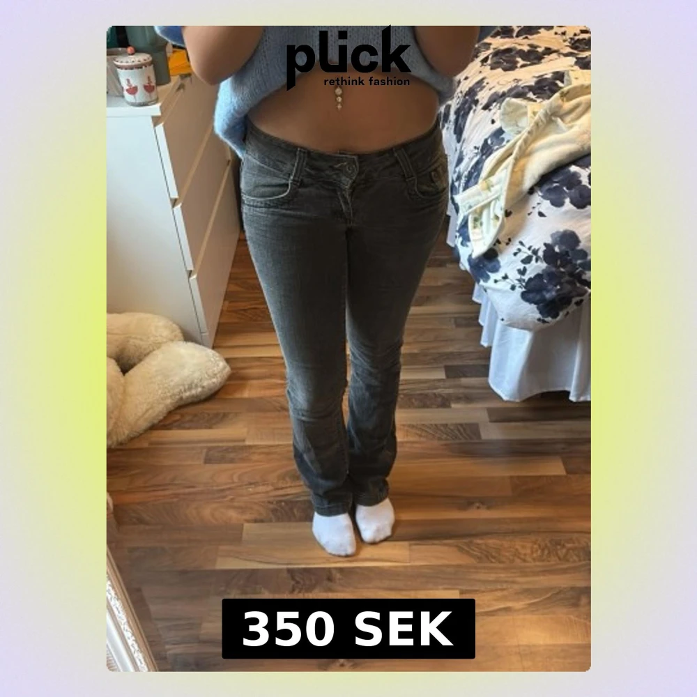 Säljer ett par gråa jeans från Only (köpt secondhand) med bootcut passform och låg midja. Jeansen har klassiska fem fickor, snygga sömmar på bakfickan. Materialet är jeans med en lätt stretch för skön passform. Perfekta till en avslappnad look.