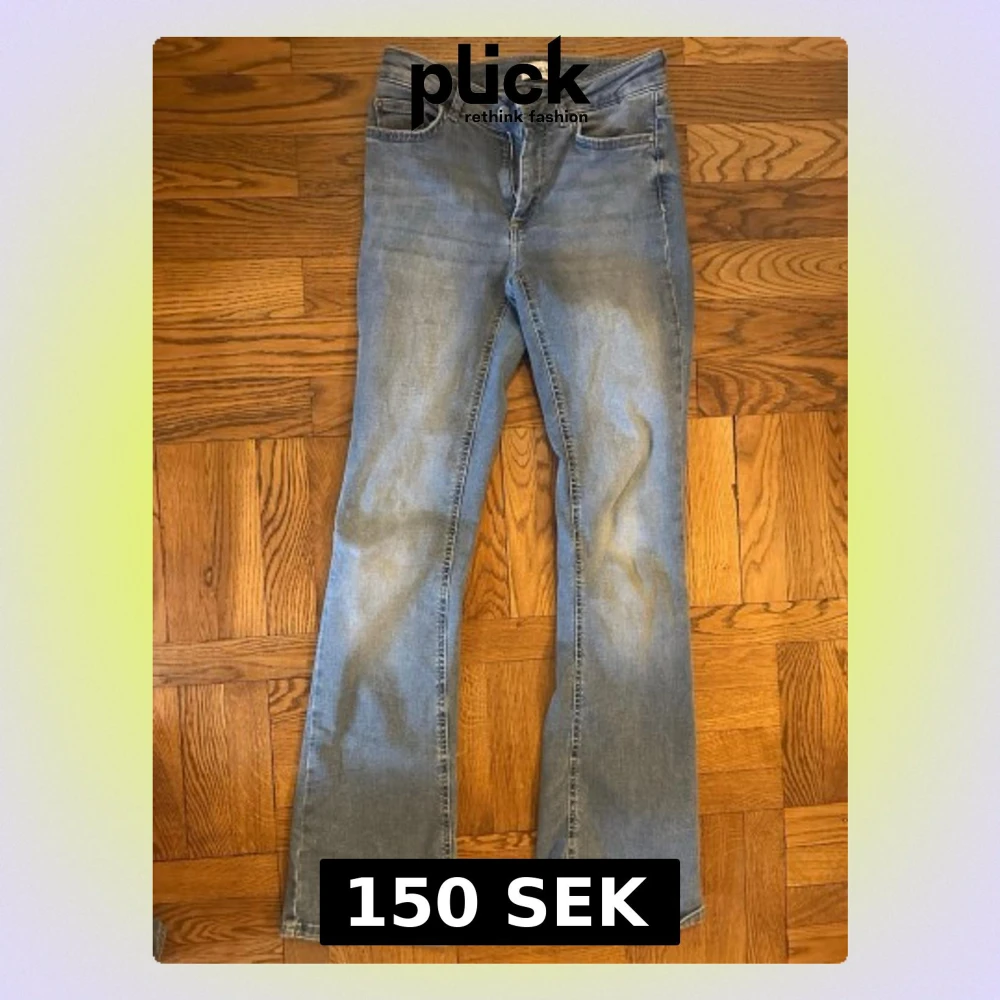 Säljer ett par ljusblå bootcut jeans från Only med klassisk femficksdesign och normal passform. Jeansen har en snygg tvättad look och är tillverkade i mjukt bomullsmaterial med lite stretch. Perfekta för dig som gillar en avslappnad men trendig stil.