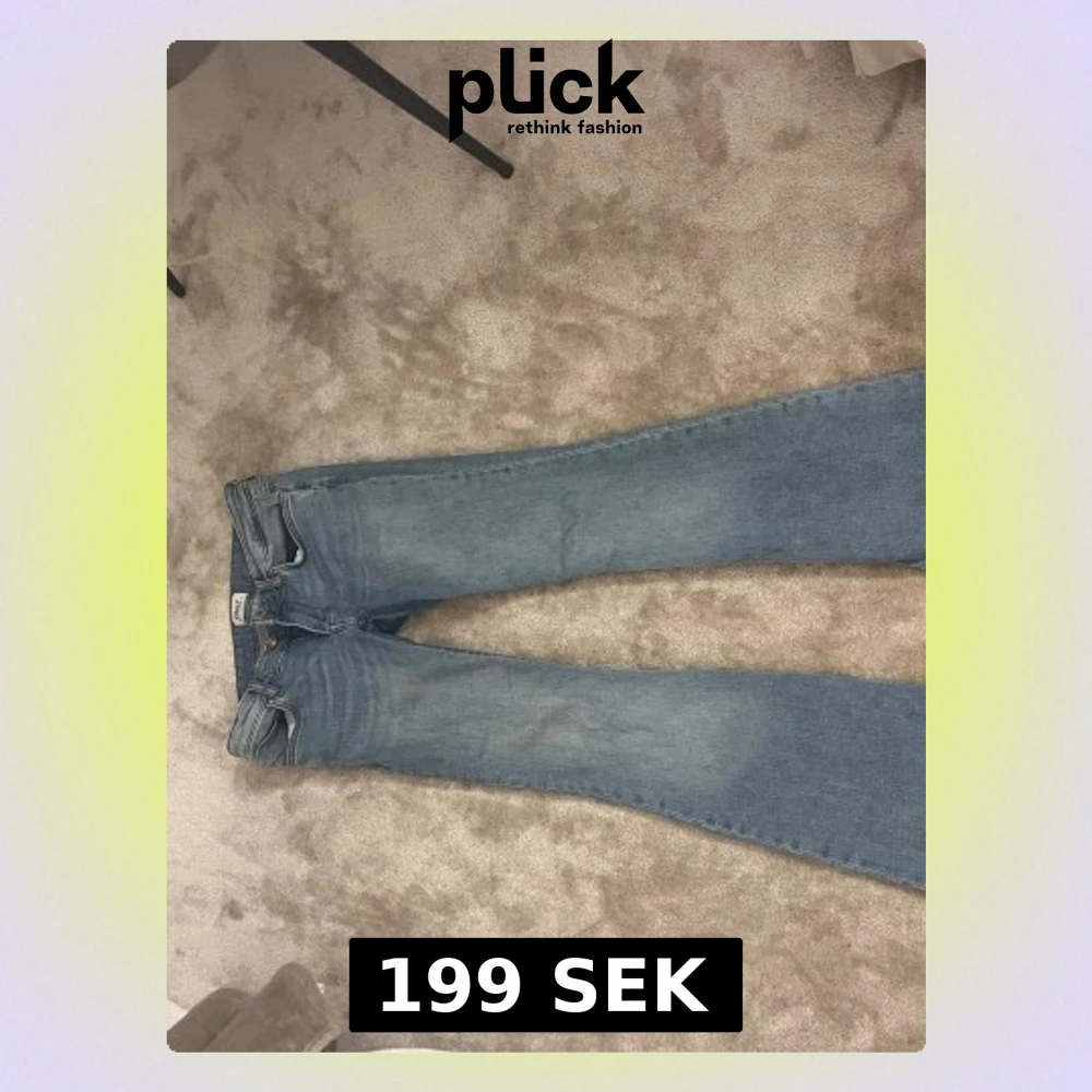 Säljer ett par ljusblå jeans från ONLY med klassisk femficksdesign och normal passform. Jeansen har raka ben och är tillverkade i mjukt denimtyg med snygga slitningar. Perfekta till sneakers eller boots för en chill look. Stl 27-32