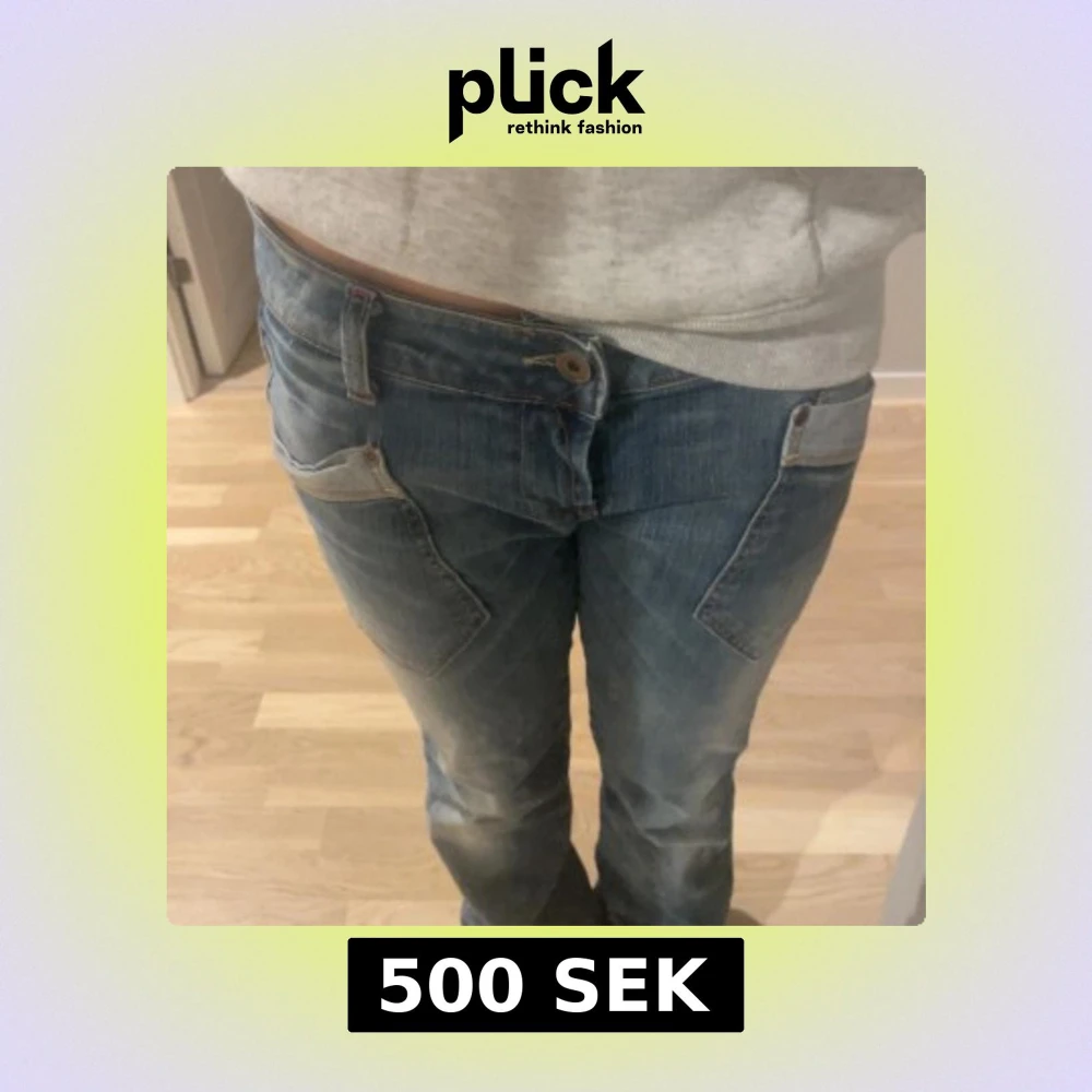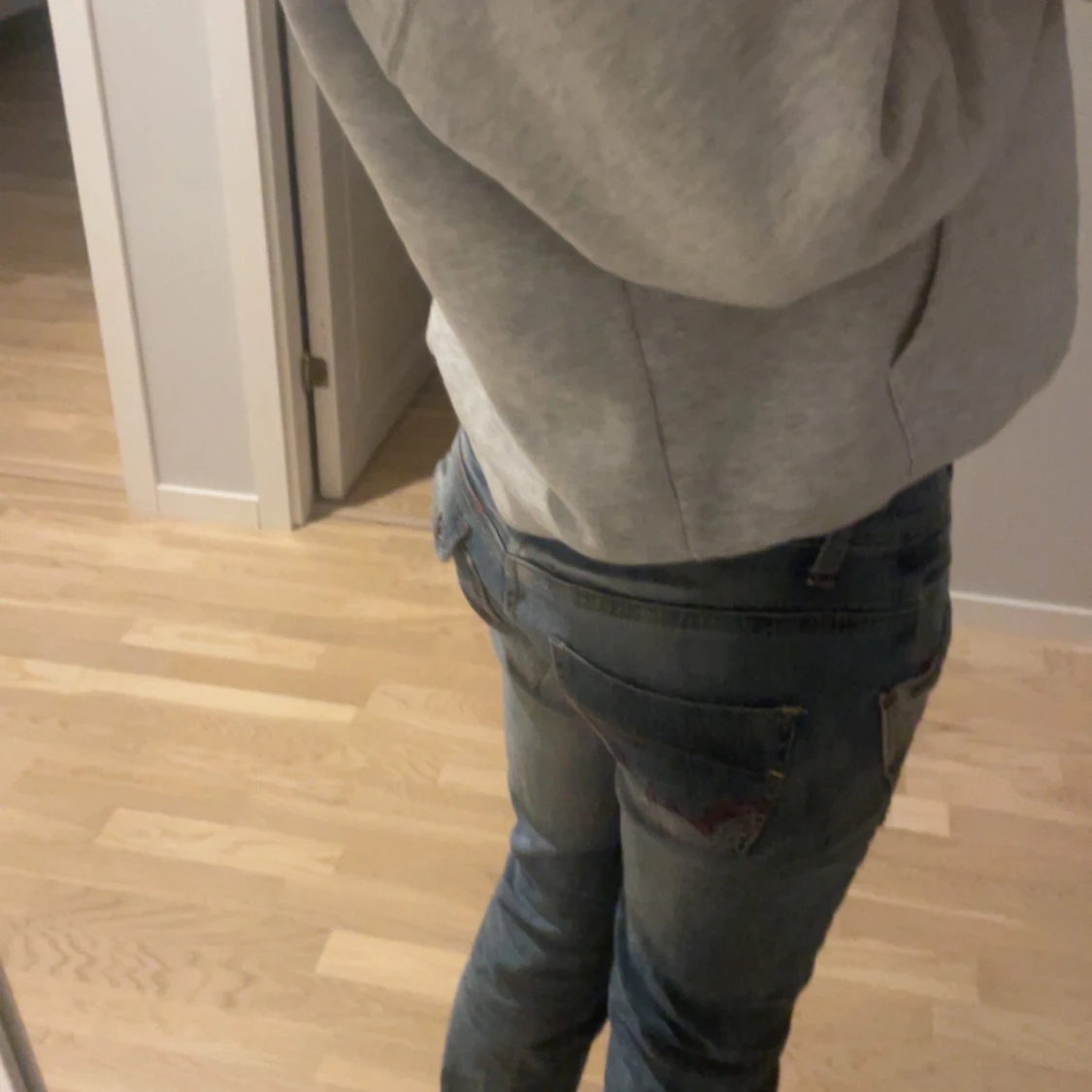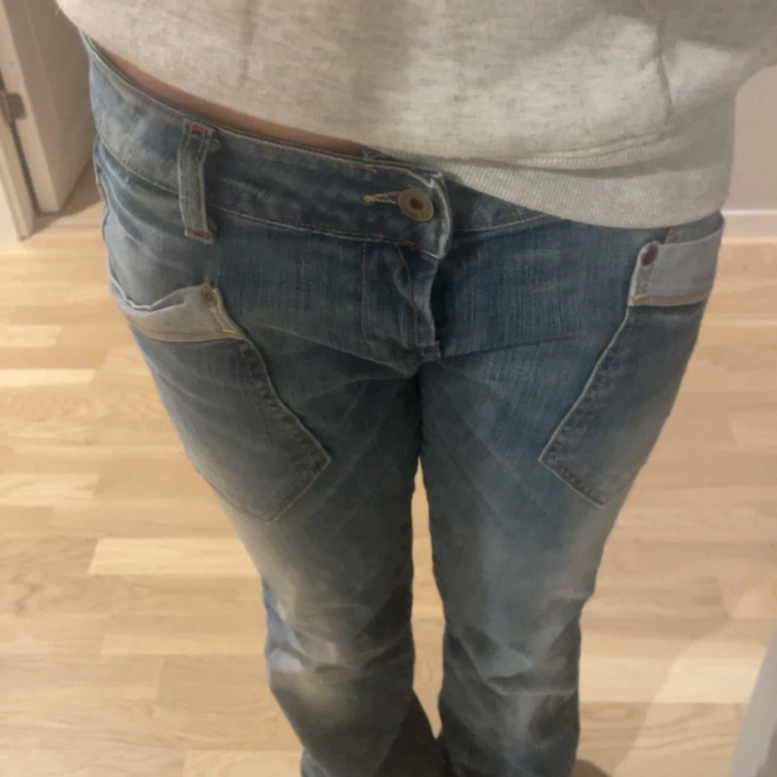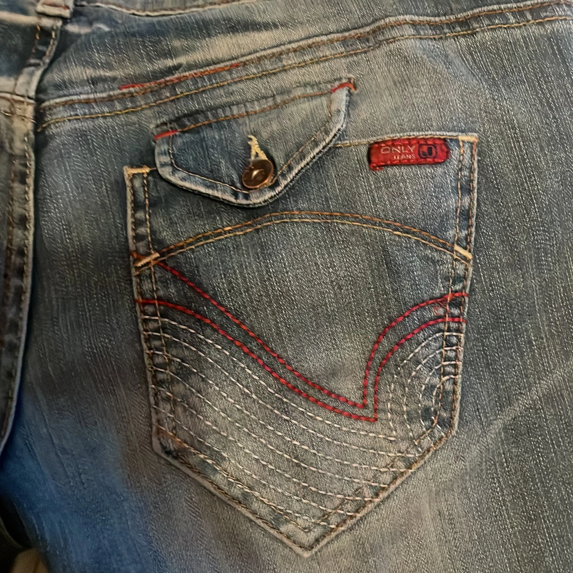 Snygga blå jeans från Only med coola detaljer på bakfickorna. De har en klassisk femficksdesign och en knappgylf. Perfekta för en avslappnad stil.