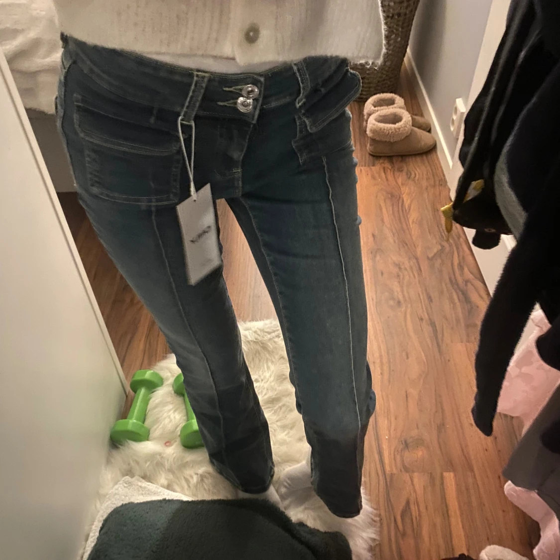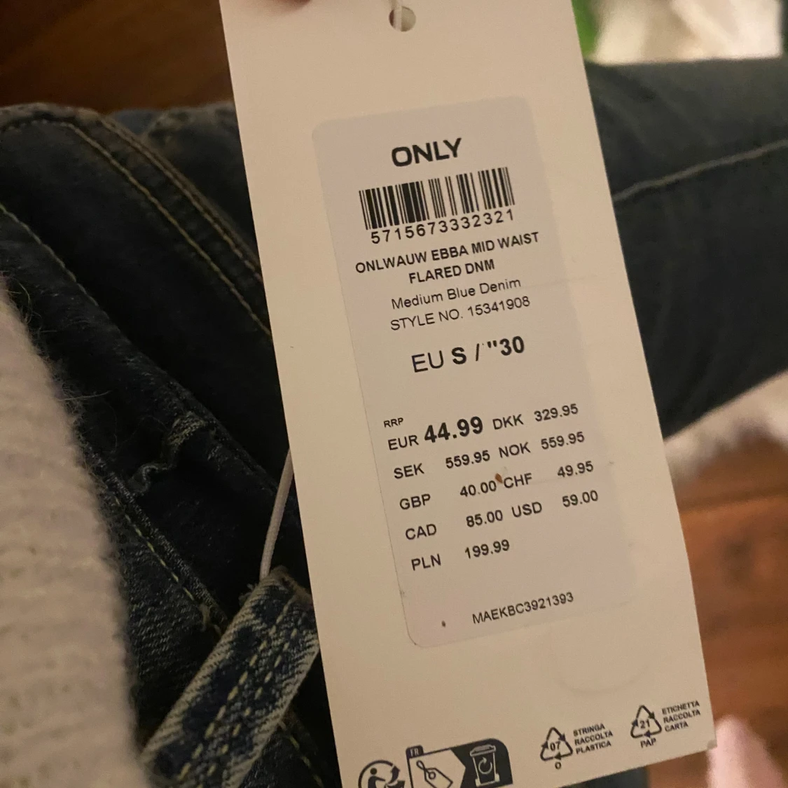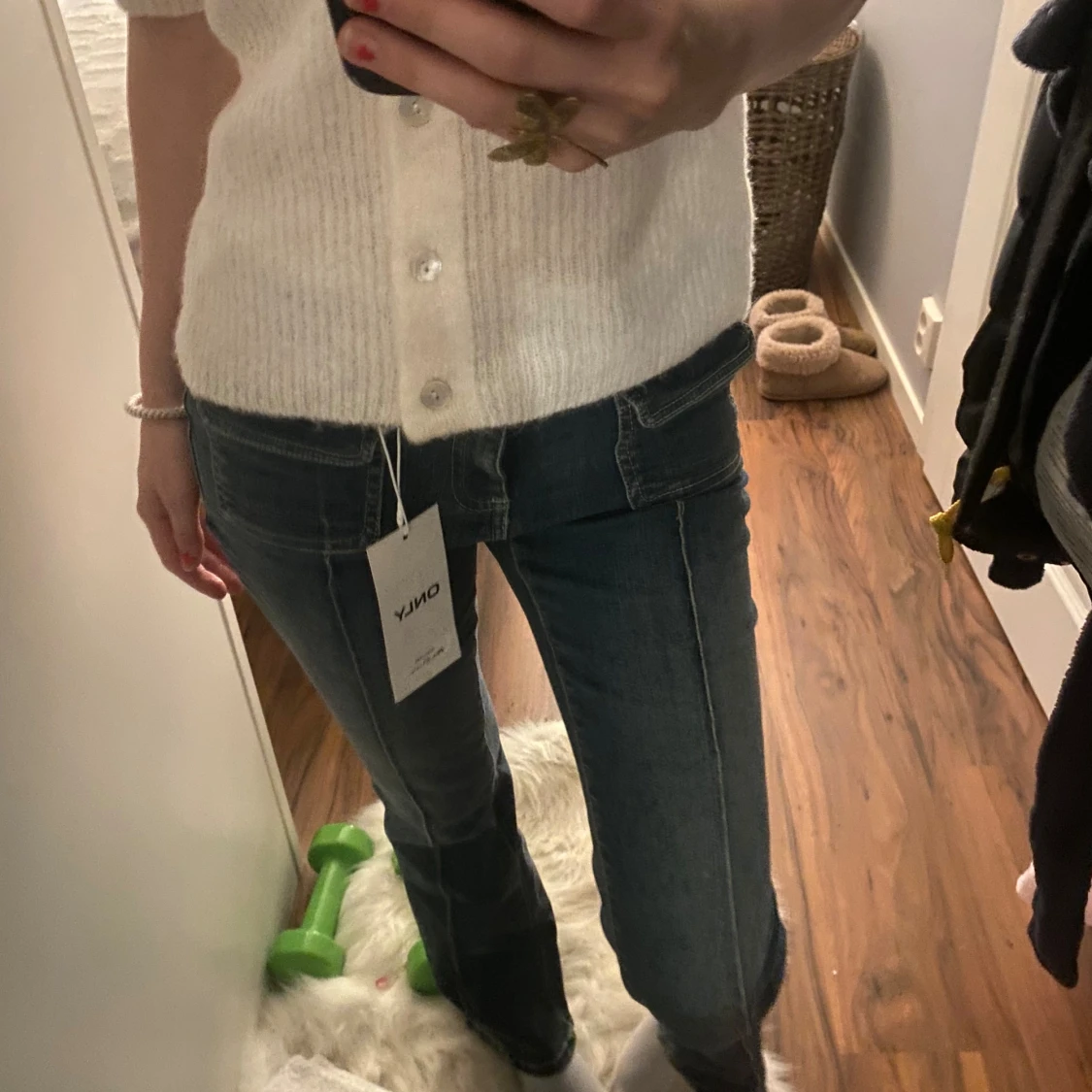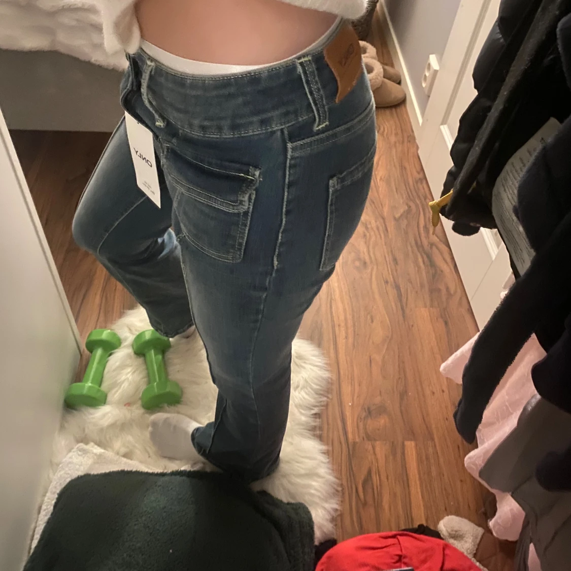 Trendiga blå jeans från ONLY med dubbla knappar i midjan och markerade sömmar. Byxorna är låg midjade. Passar både XS/S men notera att alla som är över 165 kommer de vara för korta, för dom är lite småa för mig och 165 är min längd. Säljer ungefär ny pris då de är helt oanvända☺️