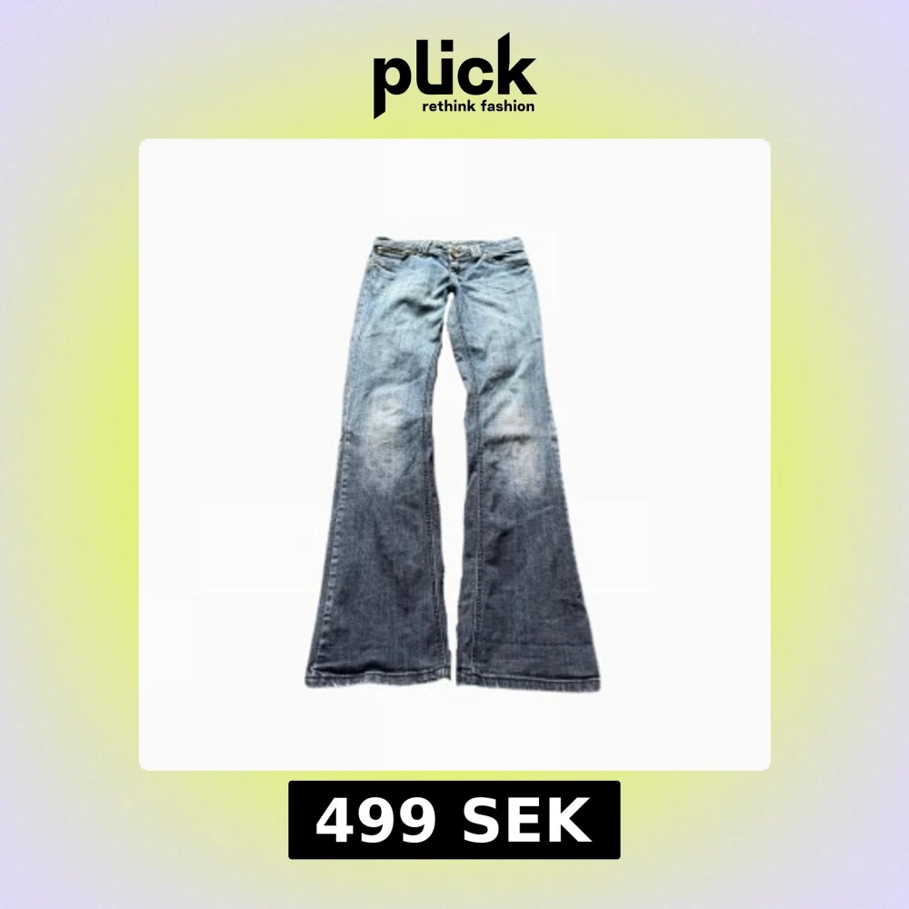 Snygga jeans med coola detaljer<3 midjemått = 38cm innerbenslängd= 82cm 🪽 Färgen på jeansen kan se lite konstig ut på bild!