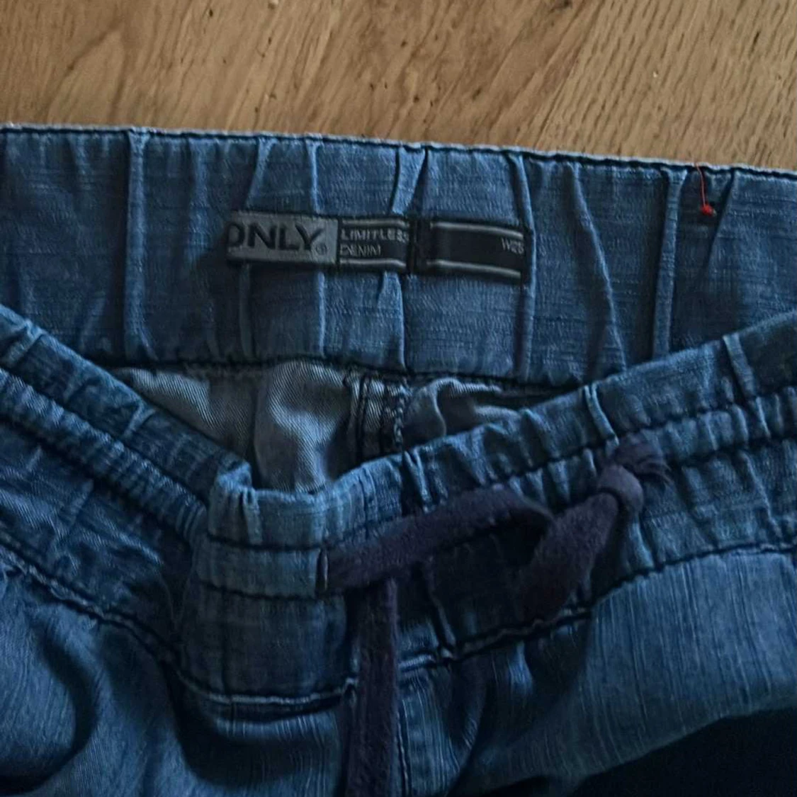 Snygga blå jeansbyxor från ONLY med resår och snörning i midjan. Byxorna har avslappnad passform, elastiska benslut och klassiska fickor både fram och bak. Perfekta för en chill och bekväm stil.