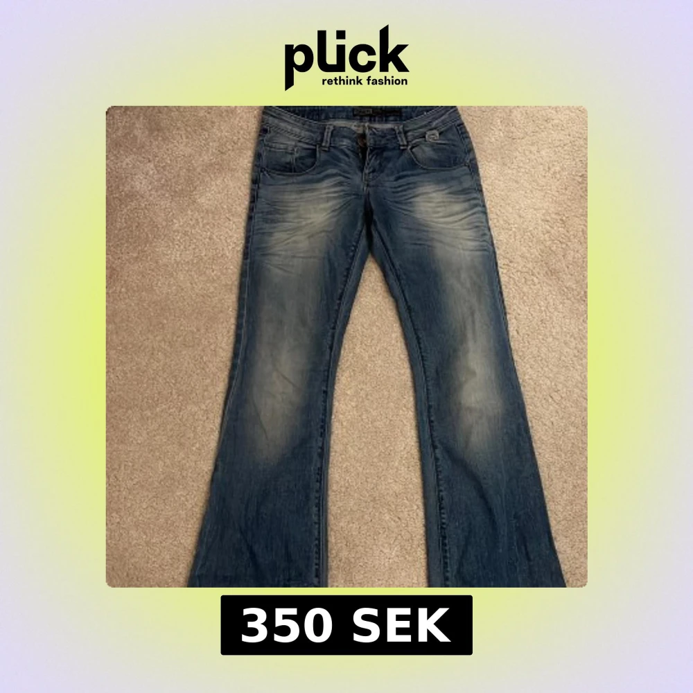 Säljer mina blåa jeans för att de inte passade mig. Jag har aldrig använt jeansen. Midjemått tvärsöver cirka 37 cm när de ligger mot en yta och Innerbenslängden är 76-77 cm💕