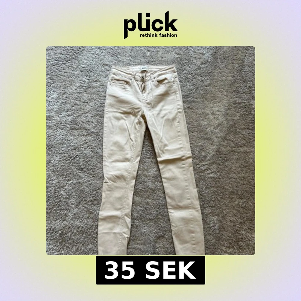 Snygga beige skinny jeans från ONLY med klassisk femficksdesign och dragkedjegylf. Byxorna har smal passform och är tillverkade i mjuk bomullsblandning. Perfekta att matcha med en oversized hoodie eller en enkel t-shirt.