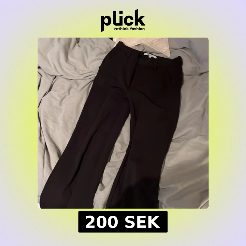 Snygga svarta kostymbyxor från ONLY tailoring i storlek XS/32. Byxorna har klassisk rak passform med vida ben och hällor för bälte. Perfekta för en clean och stilren look. Materialet är mjukt och följsamt.