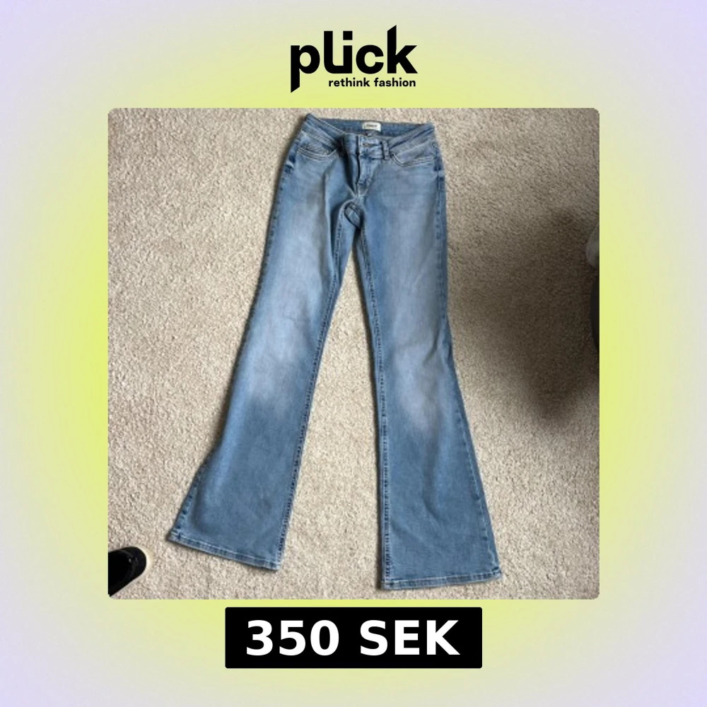 Snygga ljusblå jeans från ONLY med klassisk femficksdesign och bootcut-ben. Jeansen har låg midja och är tillverkade i mjukt denim med lite stretch för extra komfort. Jättesnygga!