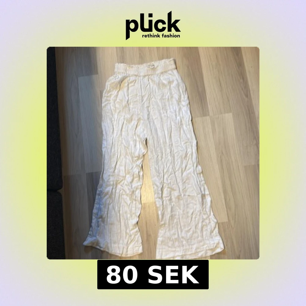 Säljer ett par vita linnebyxor från ONLY i storlek XS. Byxorna har elastisk midja och är vida i benen för en chill och luftig vibe. Perfekta för varma dagar och har en skön, avslappnad passform. Materialet är linne och färgen är ljusvit.