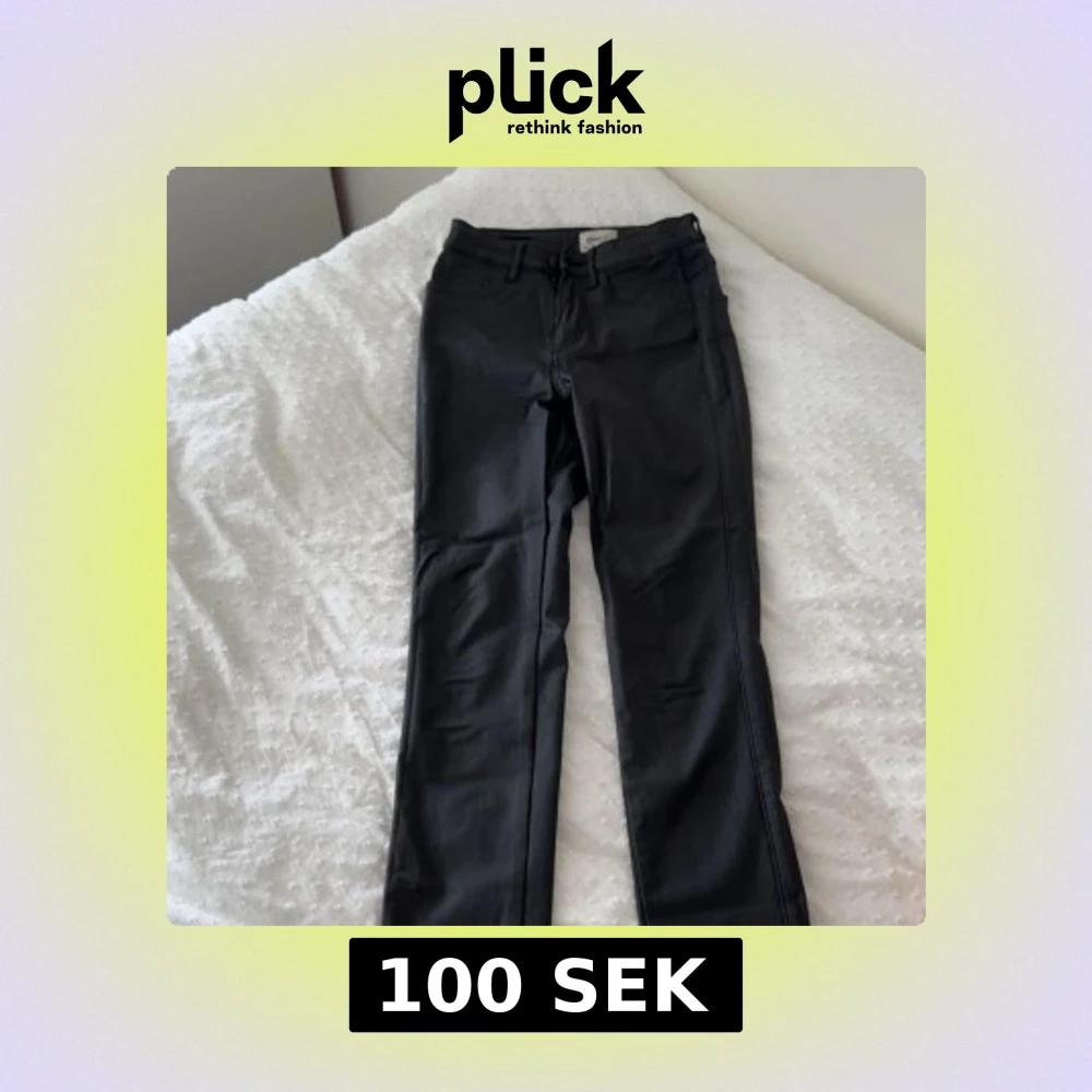 Säljer ett par svarta skinny skinnbyxor från ONLY med klassisk femficksdesign och normalhög midja. Byxorna har en tight passform och är tillverkade i ett stretchigt material som sitter snyggt och bekvämt. Perfekta för dig som gillar en stilren och enkel look.