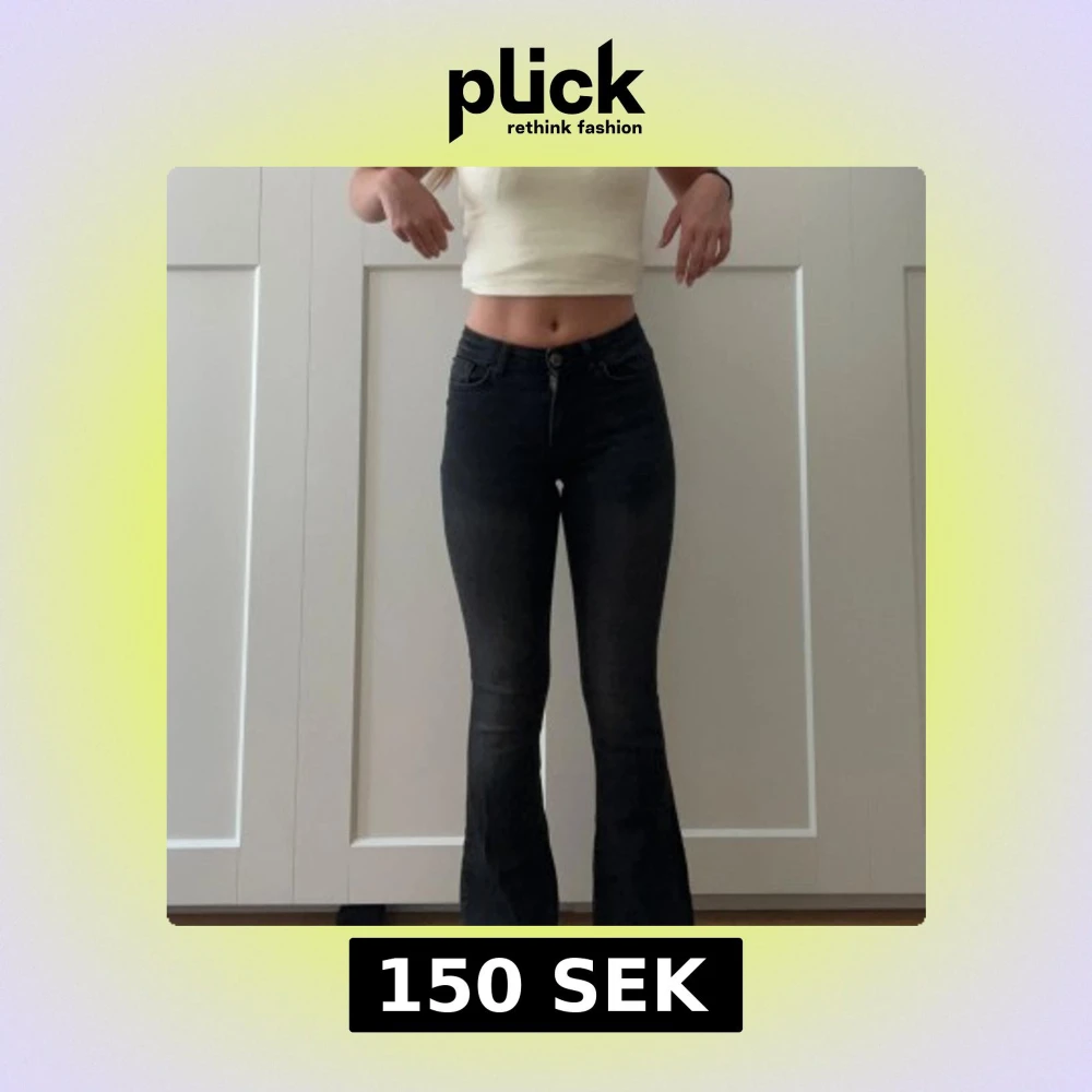Snygga svarta bootcut jeans från Only med hög midja. Jeansen är gjorda i ett stretchiga material i storlek xs/30. Är för små för mig men pga de stretchiga materialet kunde jag få på mig de för att ta bilder. I bra skick och har använts få gånger!