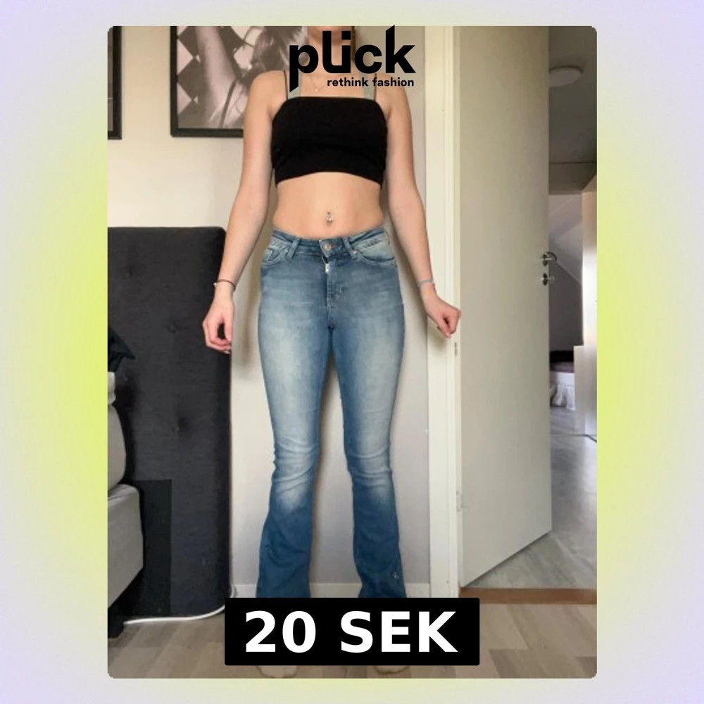 Snygga ljusblå bootcut jeans med låg midja och klassisk femficksdesign. Jeansen har lätt slitna detaljer på benen och är tillverkade i mjukt denimtyg. Passformen är normal och benen är utsvängda nedtill för en cool siluett. Fins lite slitage