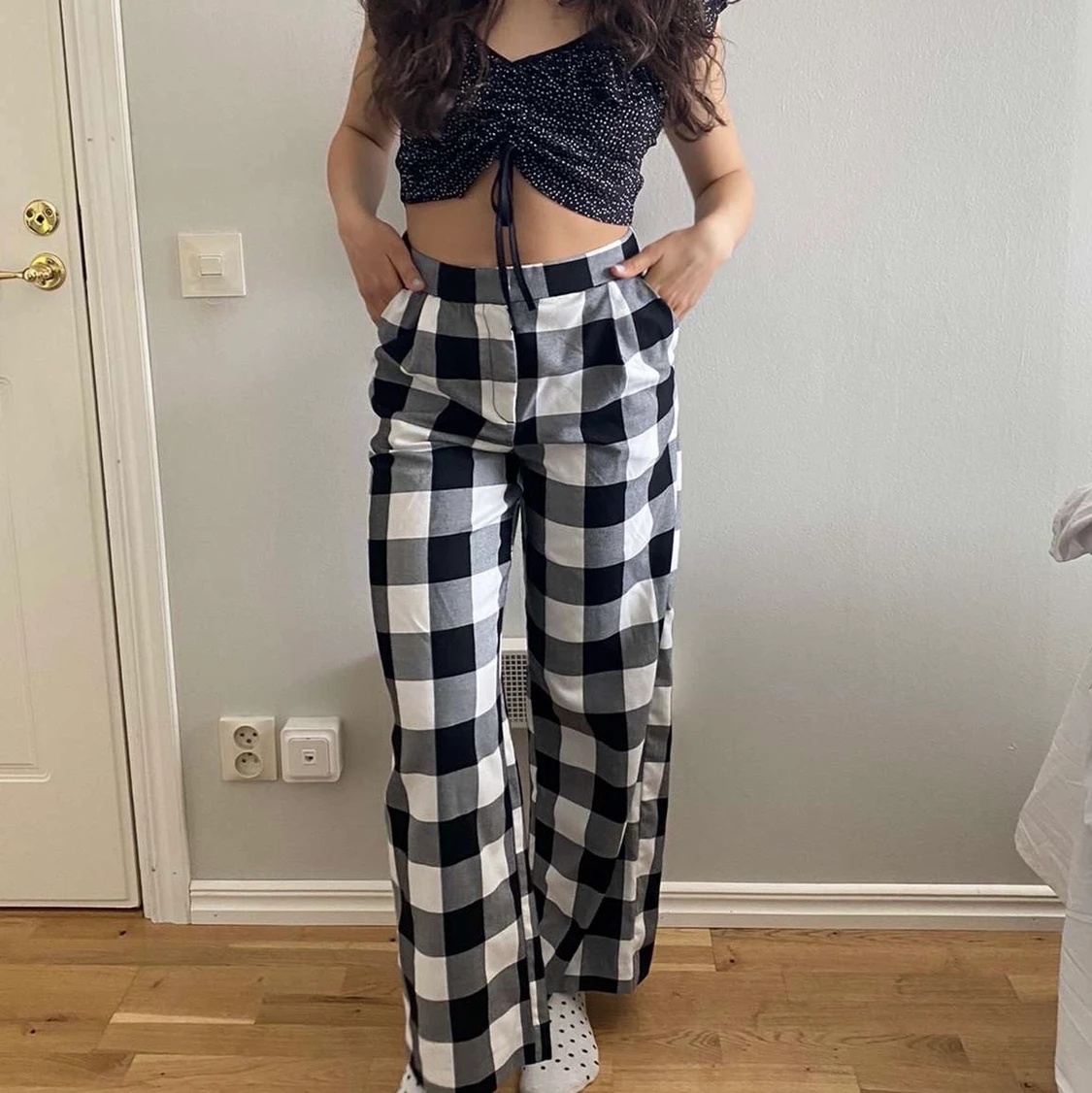Ett par vida rutiga byxor i mjukt bomulls material, funkar bra till både myskvällarns och som vardags byxor! Endast provade<3