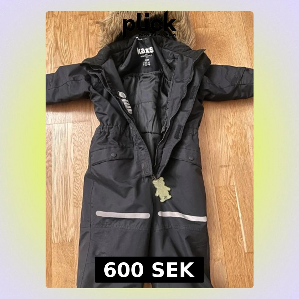 Svarta täckbyxor från Kaxs Proxtec med avtagbar huva med fuskpäls, reflexdetaljer på benen och dragkedja framtill. Byxorna har elastisk midja och praktiska fickor med knappar. Perfekta för kalla dagar utomhus. Ny pris ca 1000kr. Pris kan diskuteras
