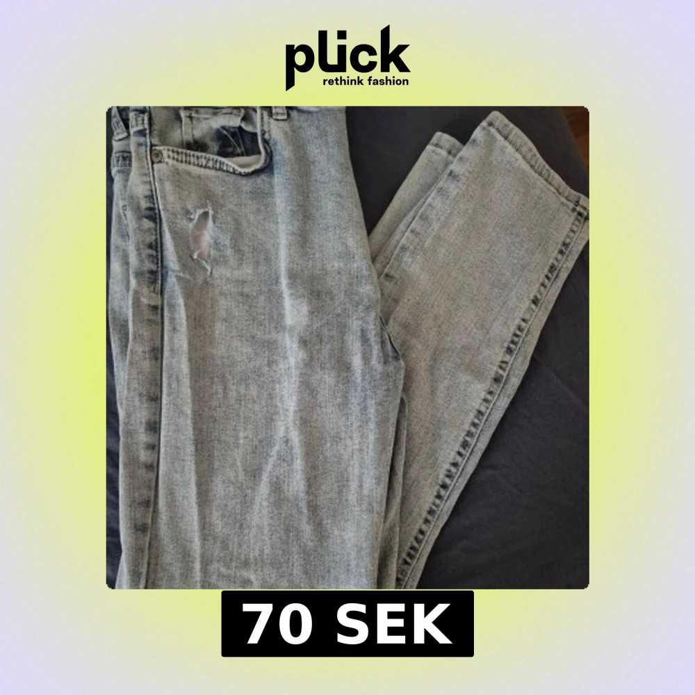 Snygga grå jeans med en cool slitning på framsidan. Perfekta för en avslappnad stil. De har en klassisk femficksdesign och knappgylf.