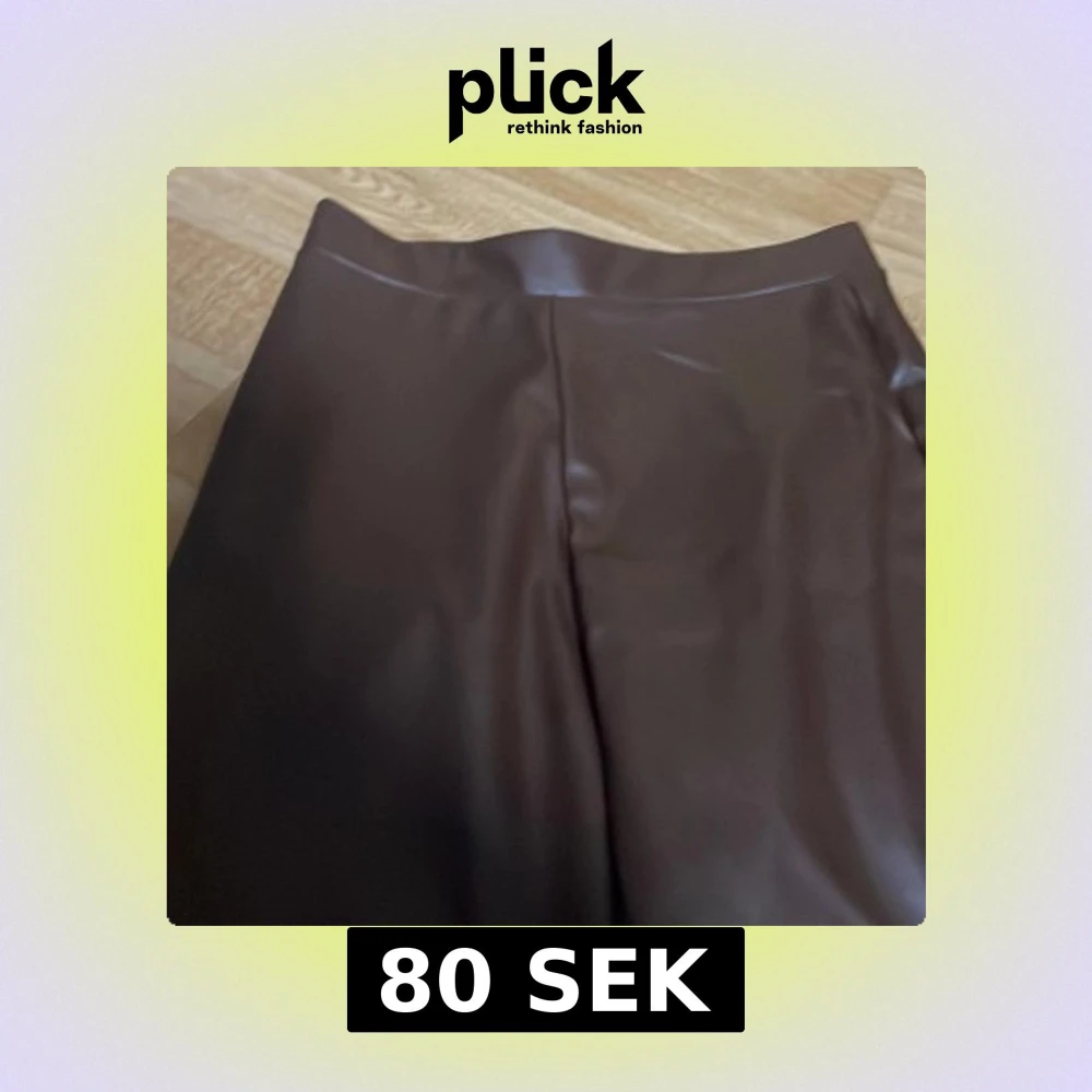 Snygga bruna byxor i skinnimitation med vida ben och hög midja. Byxorna har en slät finish och är perfekta för dig som vill sticka ut med en trendig look. Passar till många olika outfits och ger en cool vibe. Storlek 146
