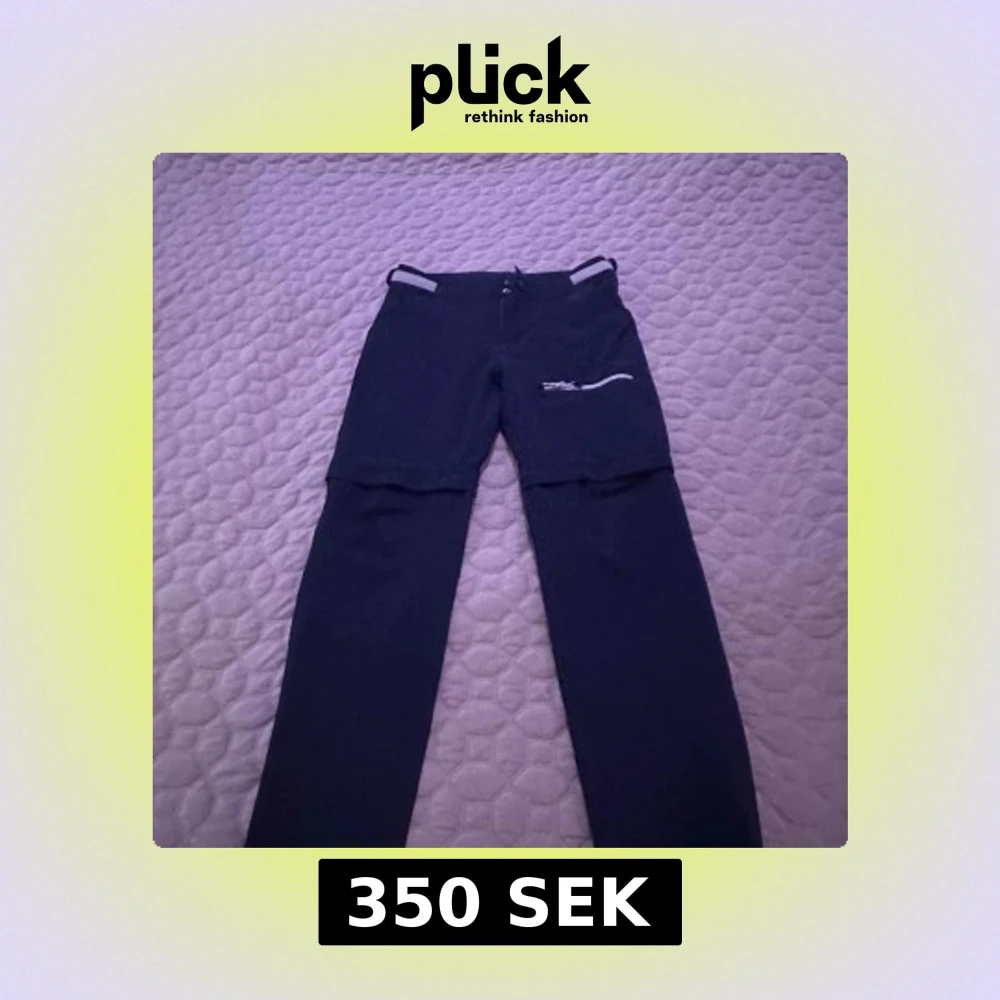 Mörkblå täckbyxor från Neomondo i juniorstorlek 14 år. Byxorna har avtagbara ben med dragkedja, vilket gör dem till ett praktiskt val för utomhusaktiviteter. De har vita detaljer vid fickorna och midjan samt en smidig passform. Byxorna är väldigt sköna och kan göras till shorts.