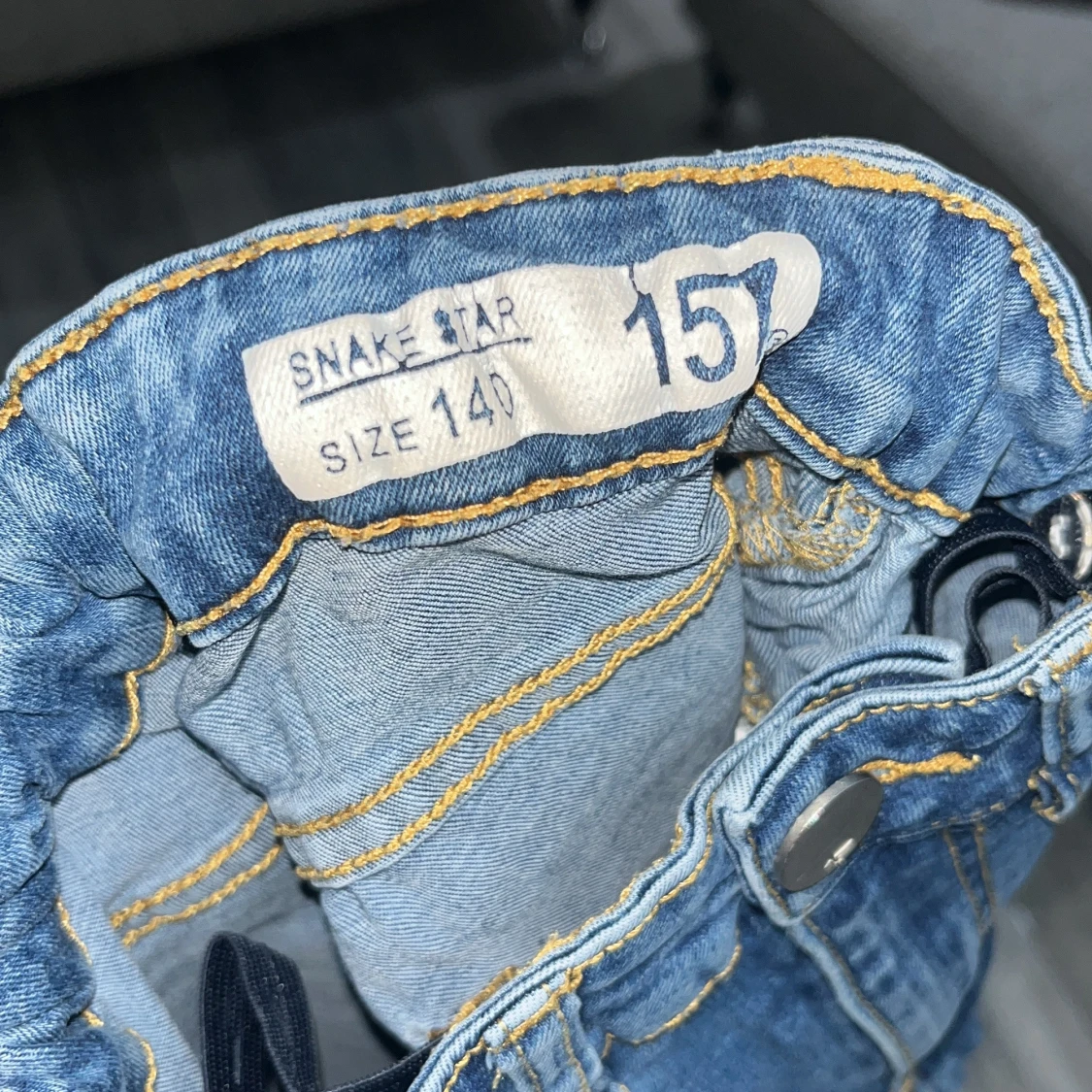 Snygga blå jeansbyxor från Snake Star med hög midja och skinny passform. Byxorna har klassisk femficksdesign och stängs med dragkedja och knapp. Perfekta för en stilren look.