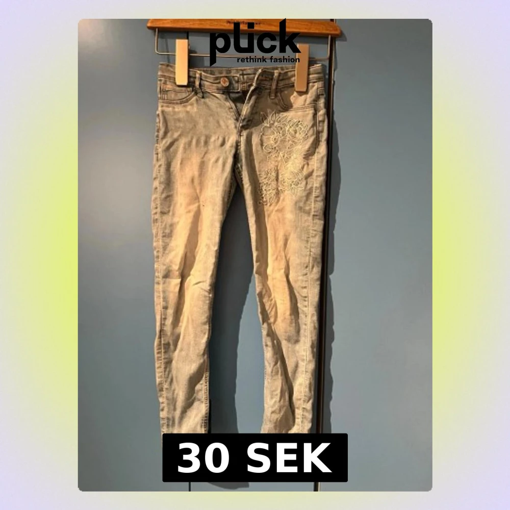 Snygga ljusblå skinny jeans med blommigt broderi på ena låret. Jeansen har klassisk femficksdesign och är tillverkade i mjukt denimtyg. Perfekta för dig som gillar detaljer och vill sticka ut lite extra.