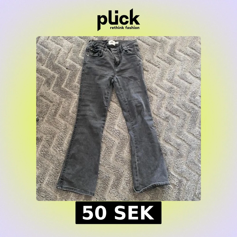 Snygga grå bootcut jeans från lager 157 i storlek 140. De har en klassisk femficksdesign och en bekväm passform. Perfekta för en avslappnad stil med en touch av 90-tal. Jag vill inte ha dessa jeans då jag har växt ur de.❤️