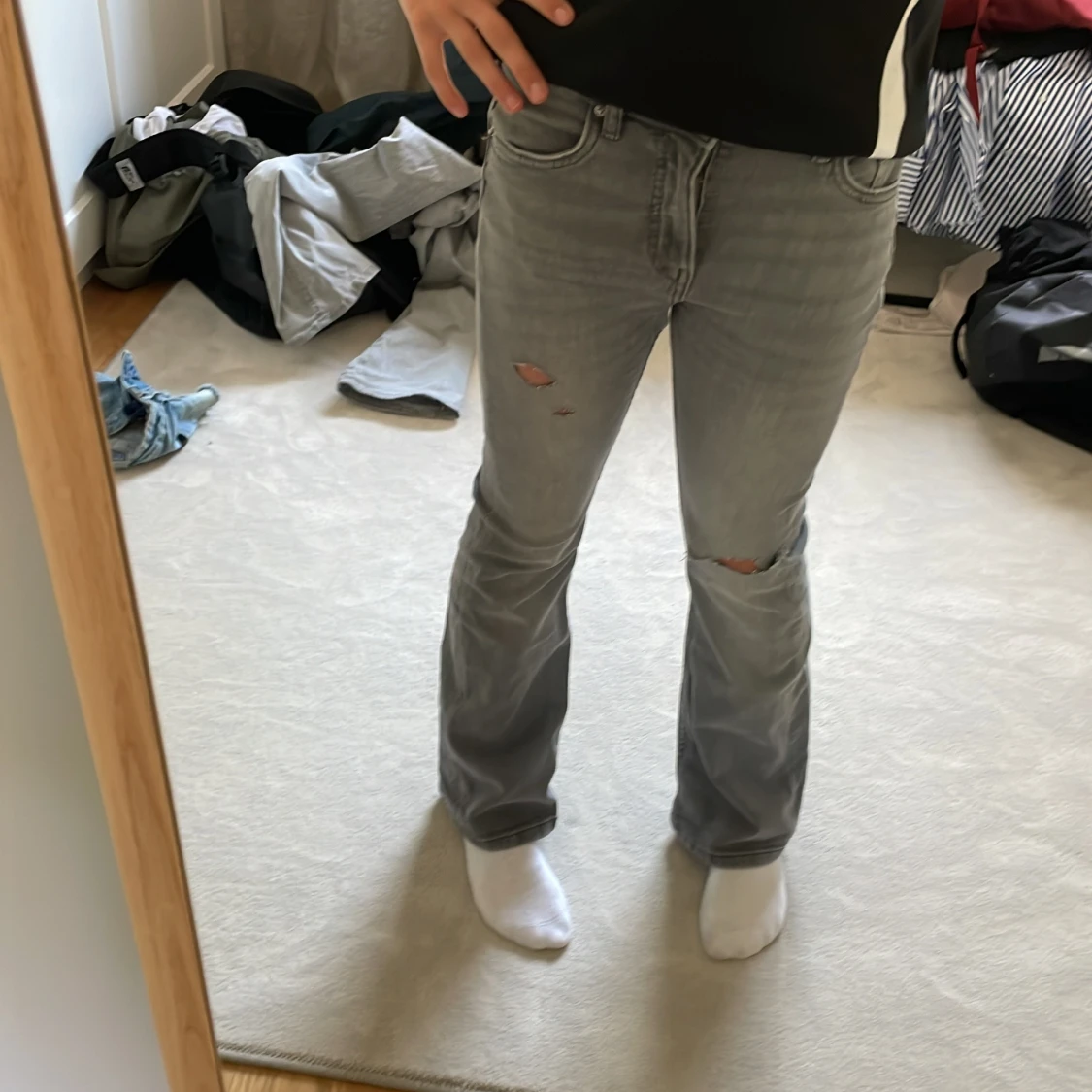 Snygga grå jeans från LAB Industries med bootcut passform och slitna detaljer på benen. Dem har jag använt typ en gång ! Bra skick