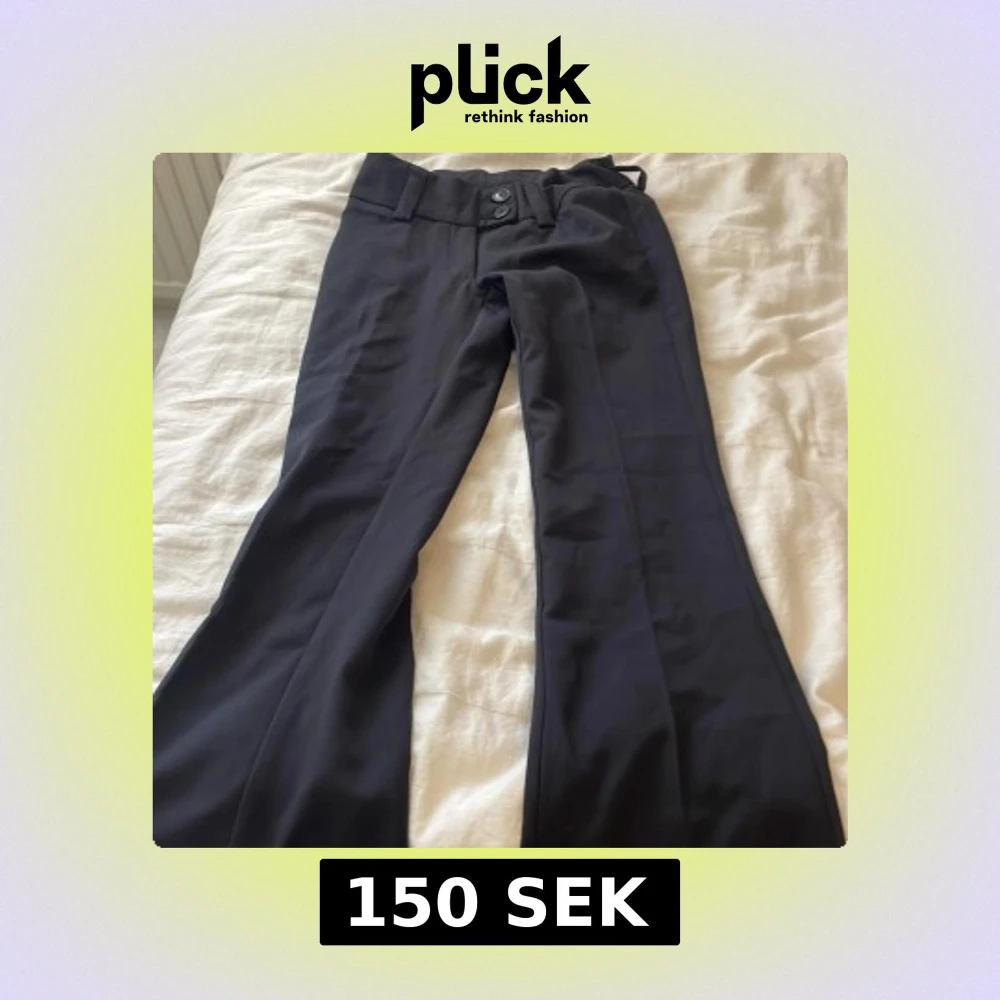 Snygga svarta kostymbyxor från RYVLS med bootcut-snitt och breda hällor för bälte. Byxorna har klassisk design med knapp och dragkedja framtill. Perfekta för dig som vill ha en stilren och trendig look.