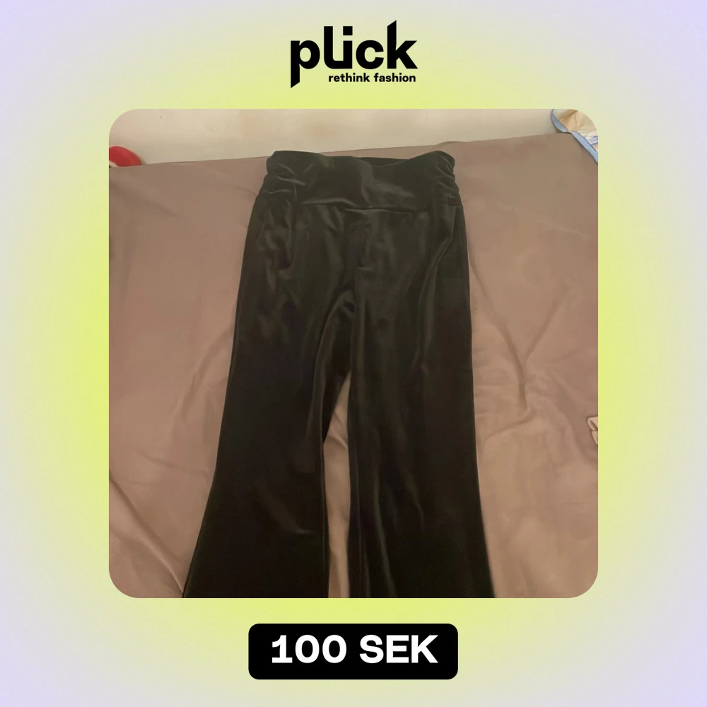 Säljer ett par svarta byxor i mjukt sammetstyg. De är högmidjade och har en elegant, glansig finish som passar perfekt för festliga tillfällen. Byxorna har en loose passform som ger en bekväm och stilren look. Perfekta för höst och vinter!