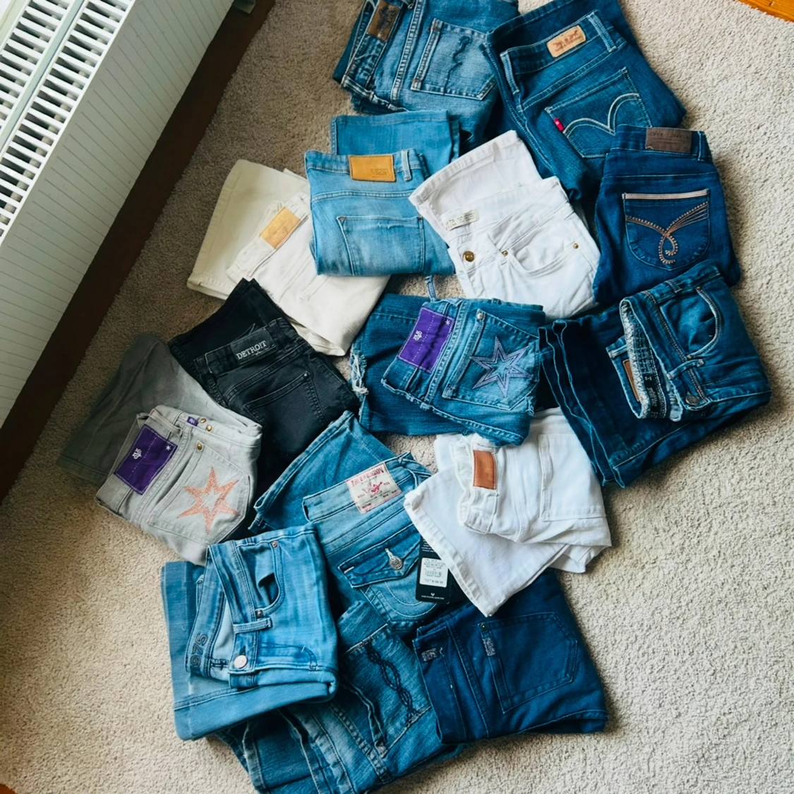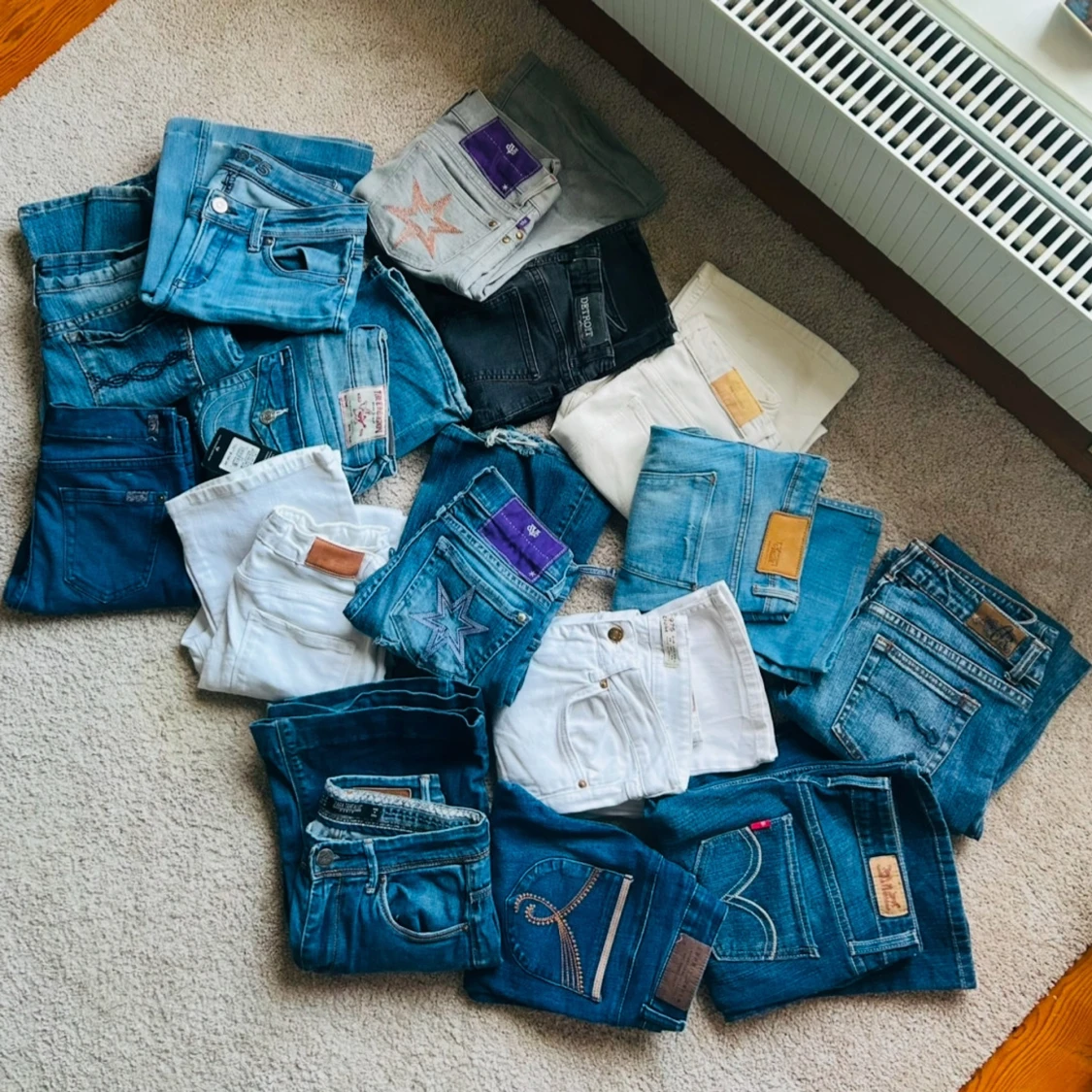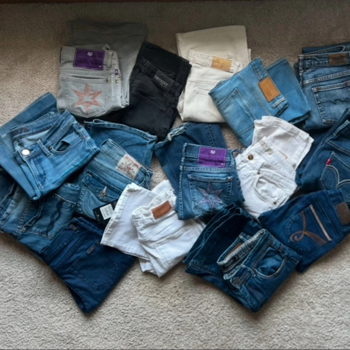 Märken som Victoria Beckham, True Religion (prislapp kvar), Levis, Crocker, Esprit, riktiga 2000s Zara och massa fler!! Bootcut, straight, skinny och alla, lågmidjade. Kommer lägga upp alla separat också så följ så ni inte missar! därifrån får ni nämligen mer info om varje specifikt par. Storlekarna är i waist 25, 26, 27 och length 34, 35 och 36. Finns även barn storlekar för en ännu bättre passform, de passar mig som är en Xs/S