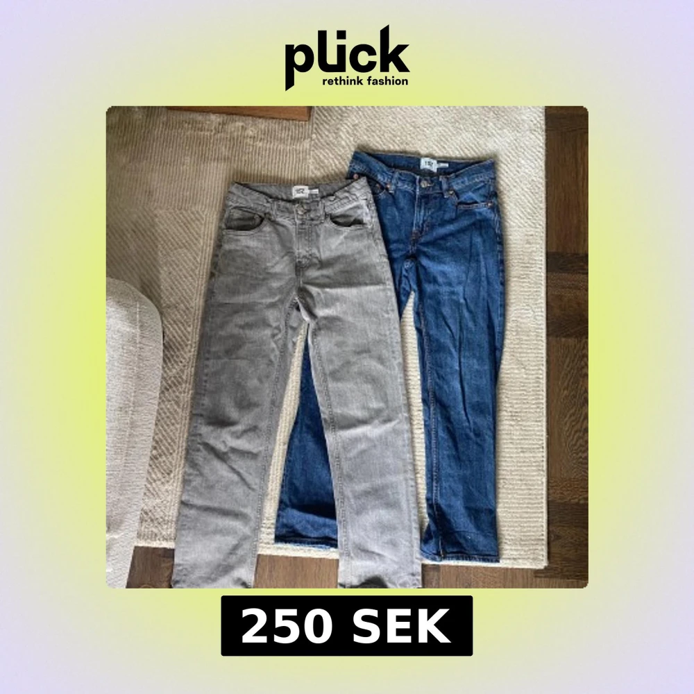 Säljer två par klassiska jeans från 157, ett par i grått och ett i blå denim. Båda har raka ben, fem fickor och knappgylf. Perfekta för dig som gillar enkel och tidlös stil. Materialet är tålig bomullsdenim och båda har justerbar midja på insidan.